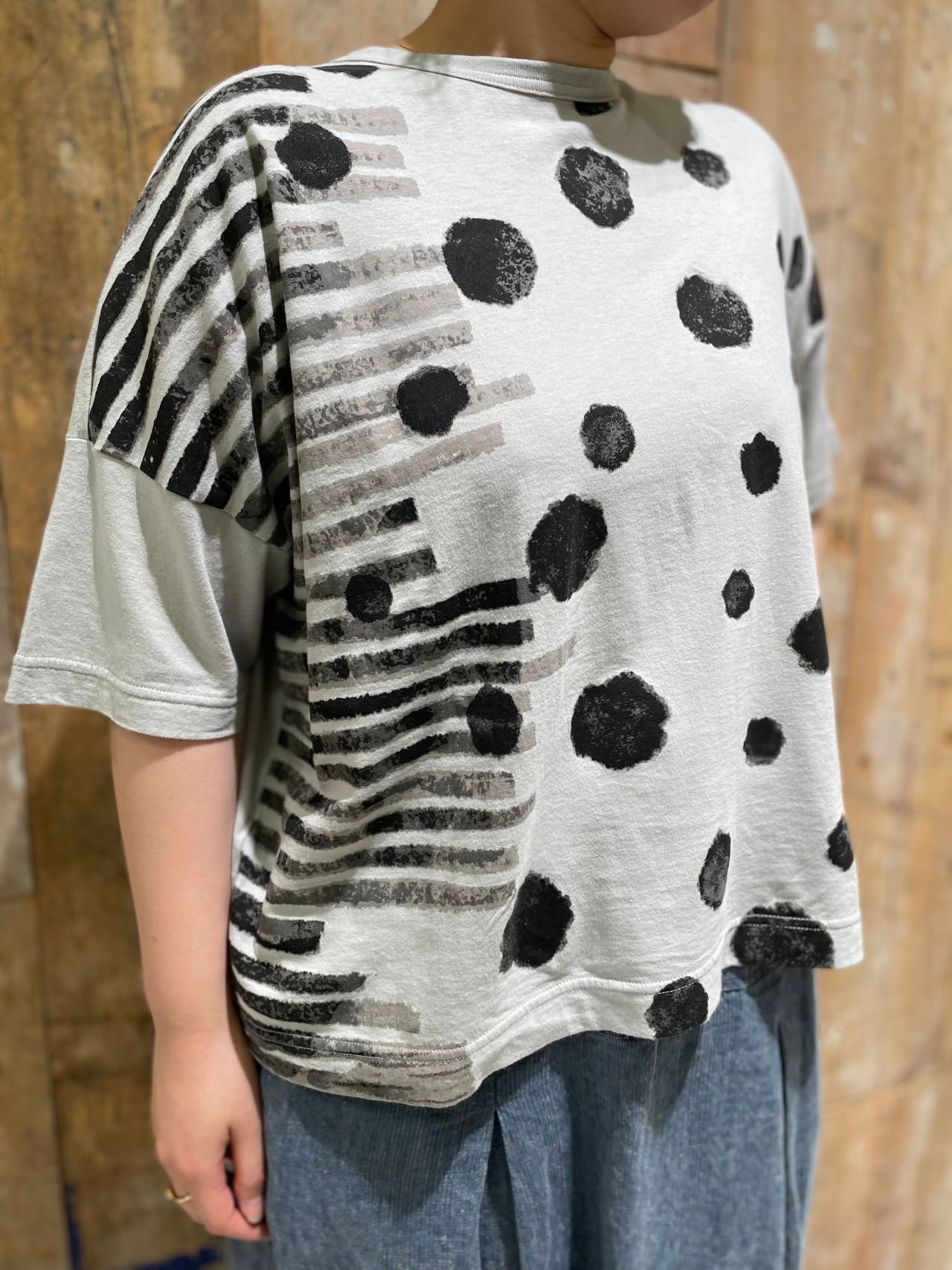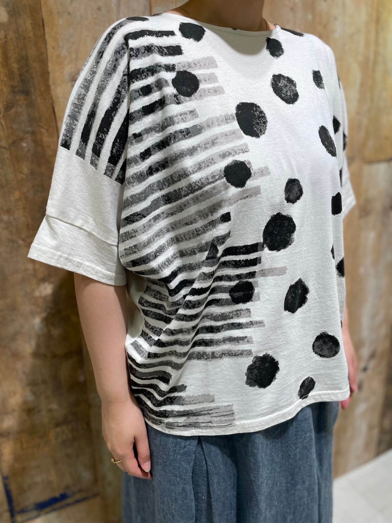 ●ボーダー&ドットプリントコットン天竺プルオーバー