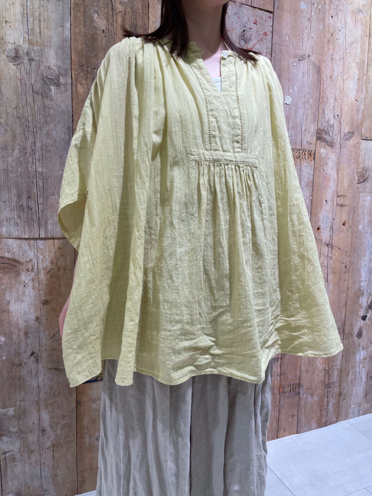 細いスラブ糸を使ったナチュラル感があり肌触り抜群のブラウス。