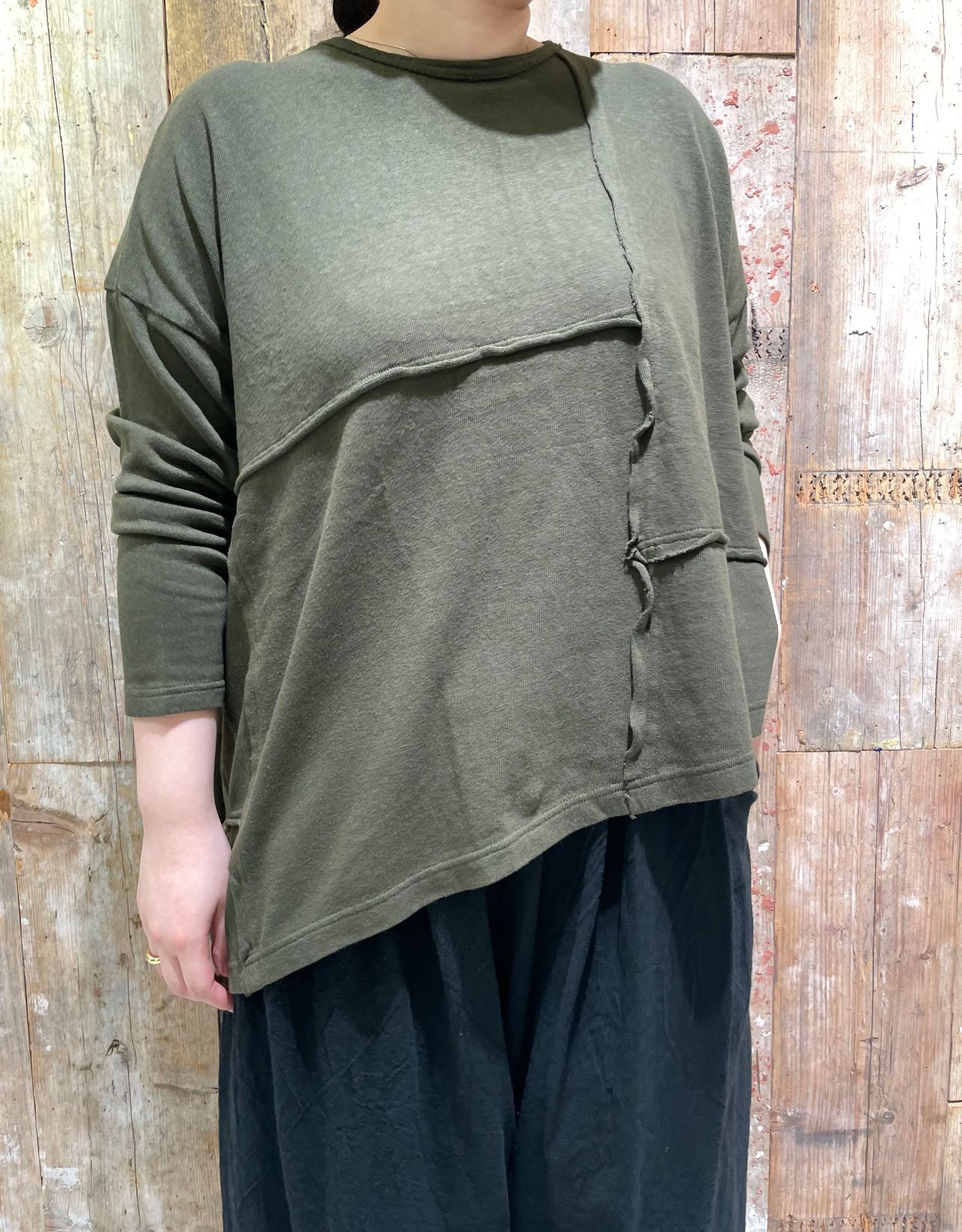重ね接ぎのデザインとアシンメトリーな裾ラインで、一枚でも様になります。