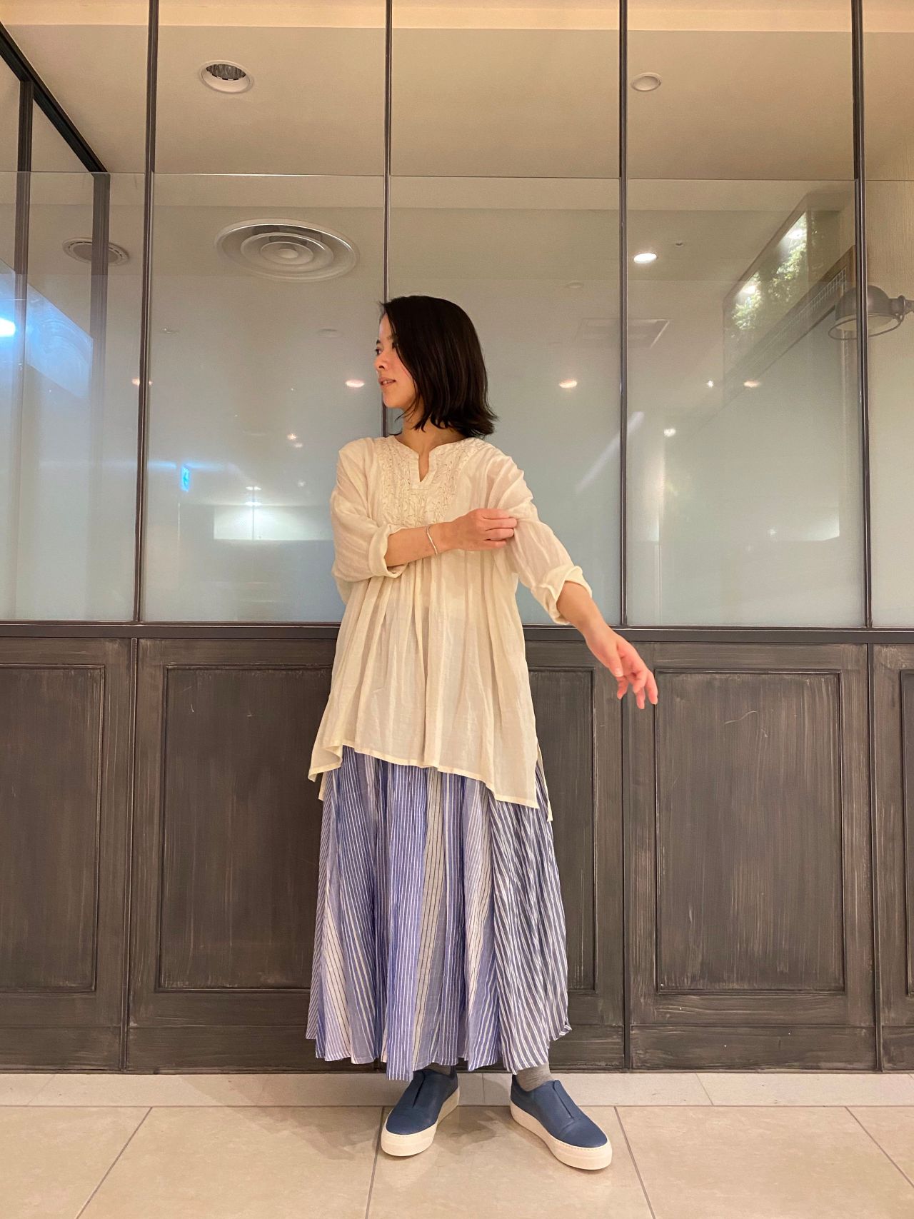 お尻が隠れる丈感で、両サイドにはスリットがありボトムを選ばないところもオススメ◎