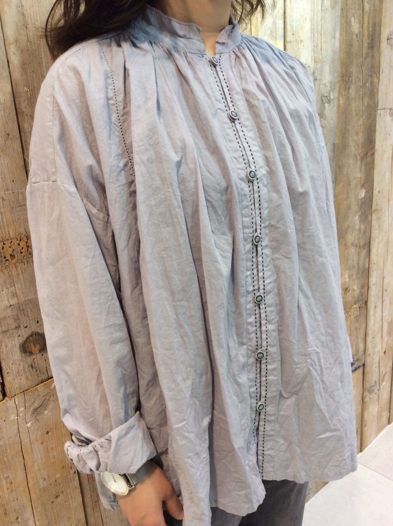 お尻が隠れる安心の着丈のブラウスは、裾のスリットと背中のギャザーでゆったりとした着心地です。