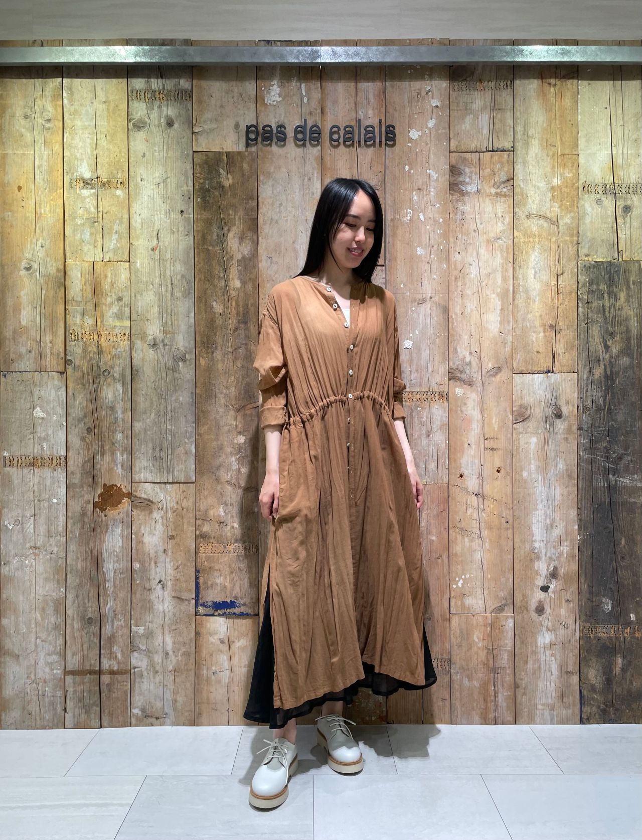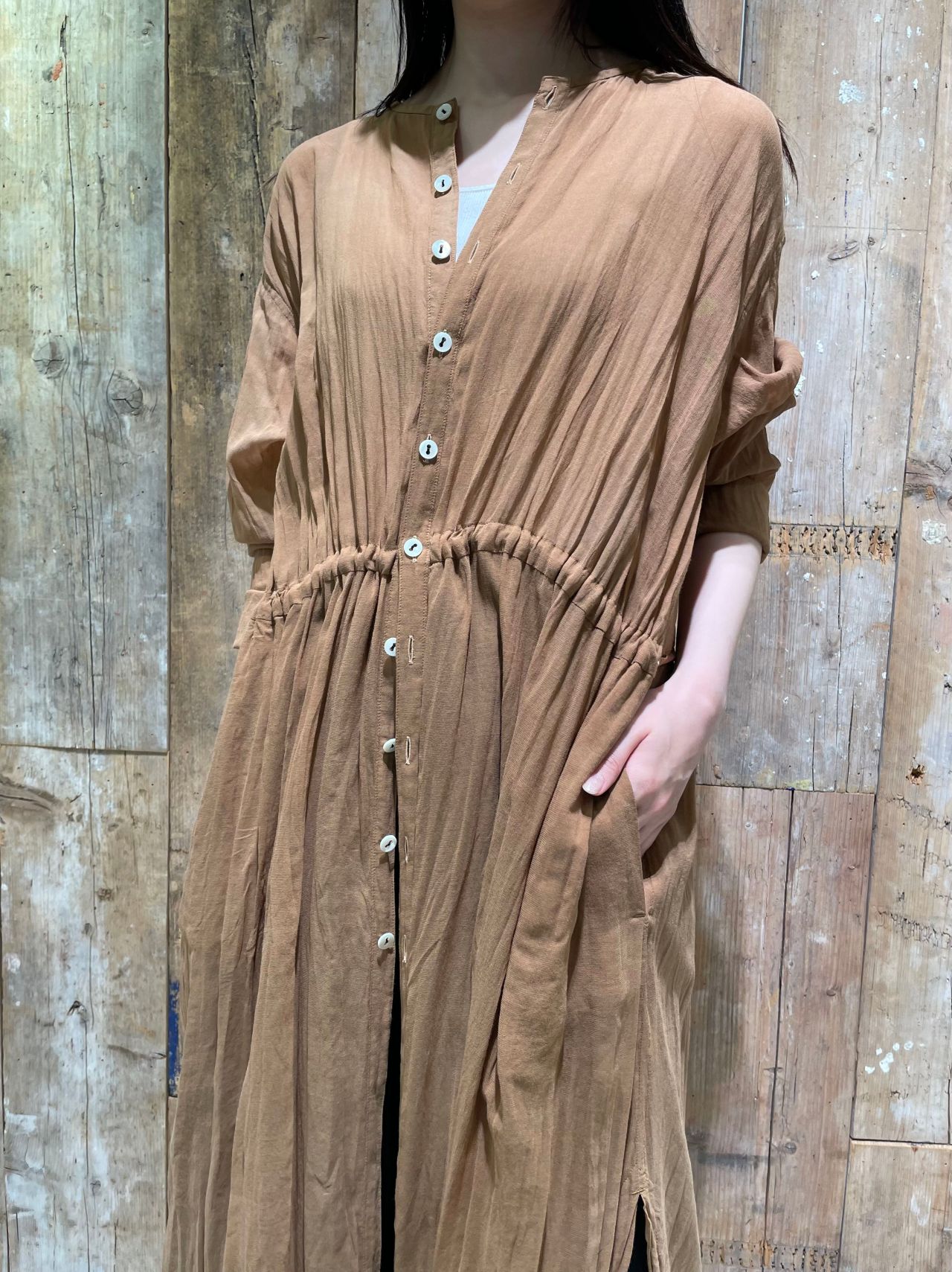 柿渋で染められた色合いが魅力のワンピース。