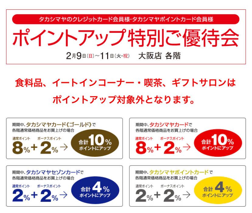 【明日から】タカシマヤポイントアップ特別ご優待会