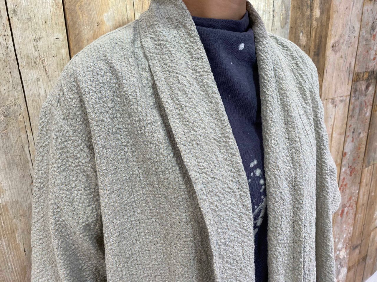 加工によって綿とウールの縮まり方が異なるため、このような風合いに仕上がっています。