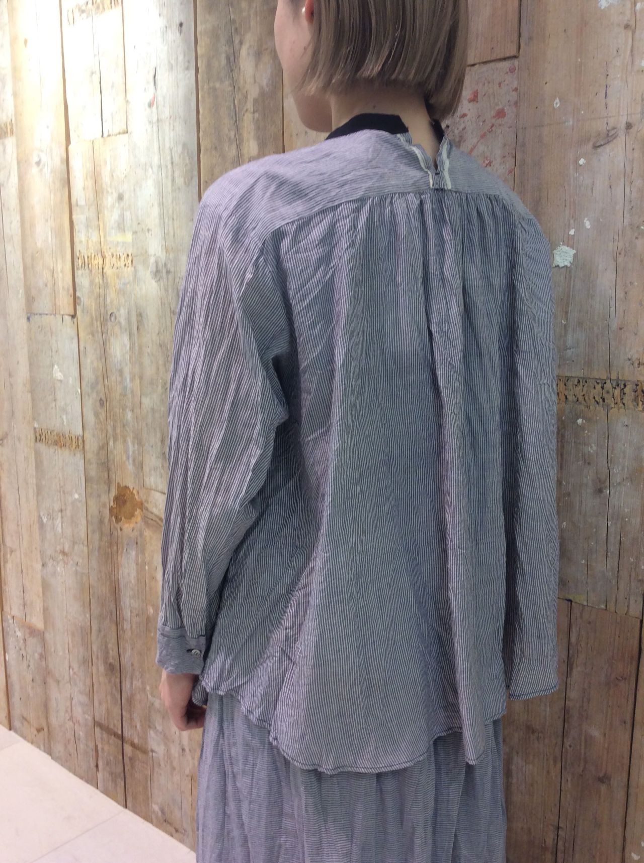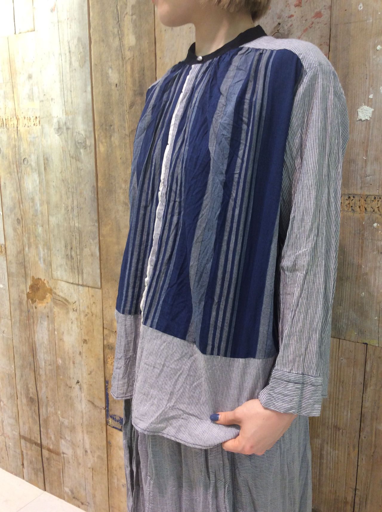 ぱっと目をひく、前身頃の太さの違うストライプもポイントです。