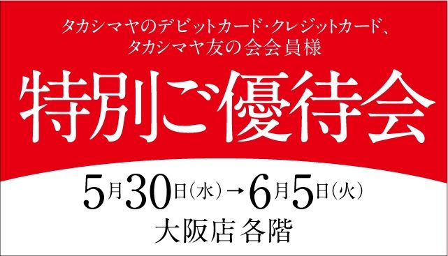 上記期間中、タカシマヤデビットカード、クレジットカード、友の会会員様は特別価格でお買い求めいただけます。