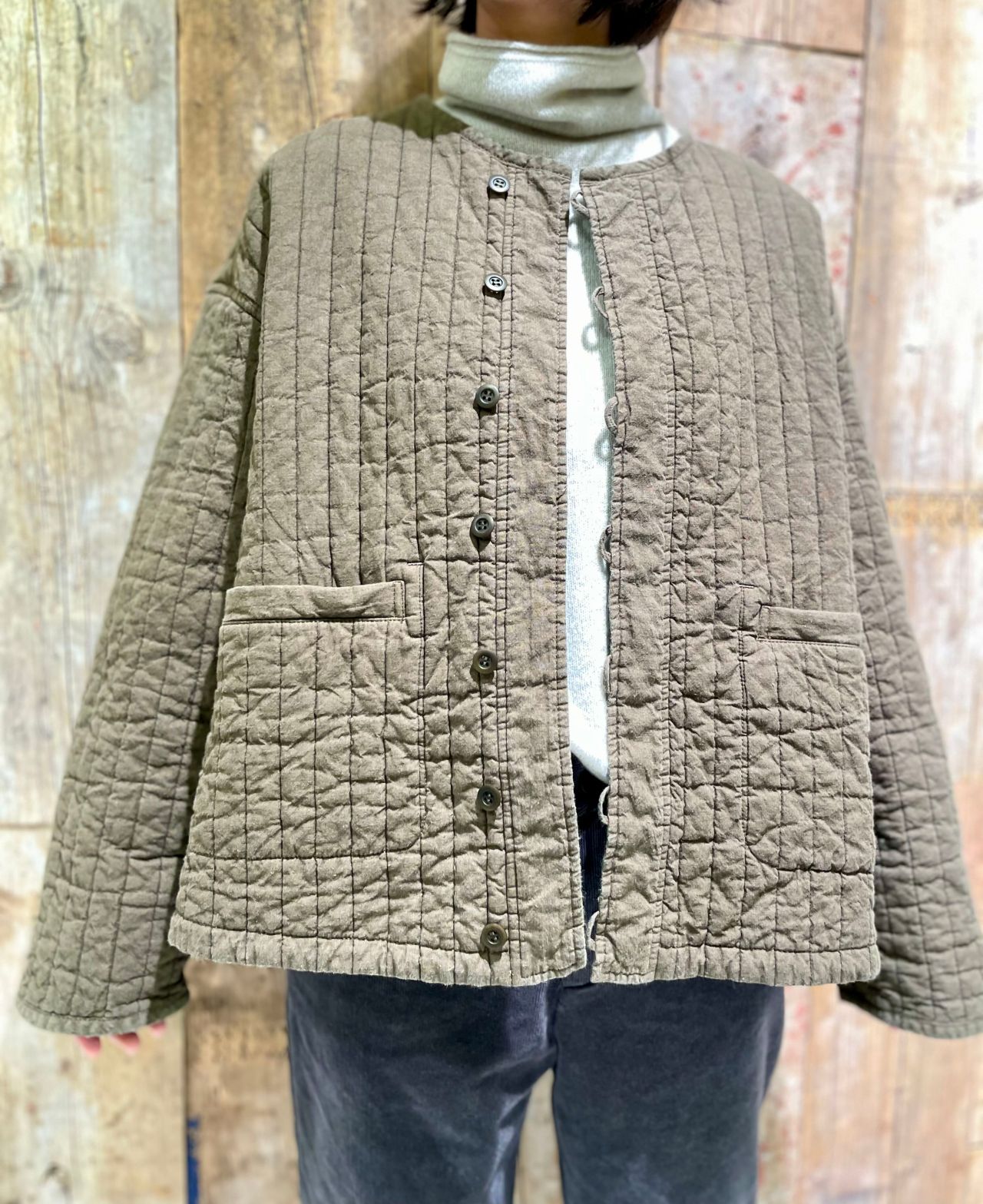 どんなボトムとも合わせやすく、気軽に羽織れる丈感です。