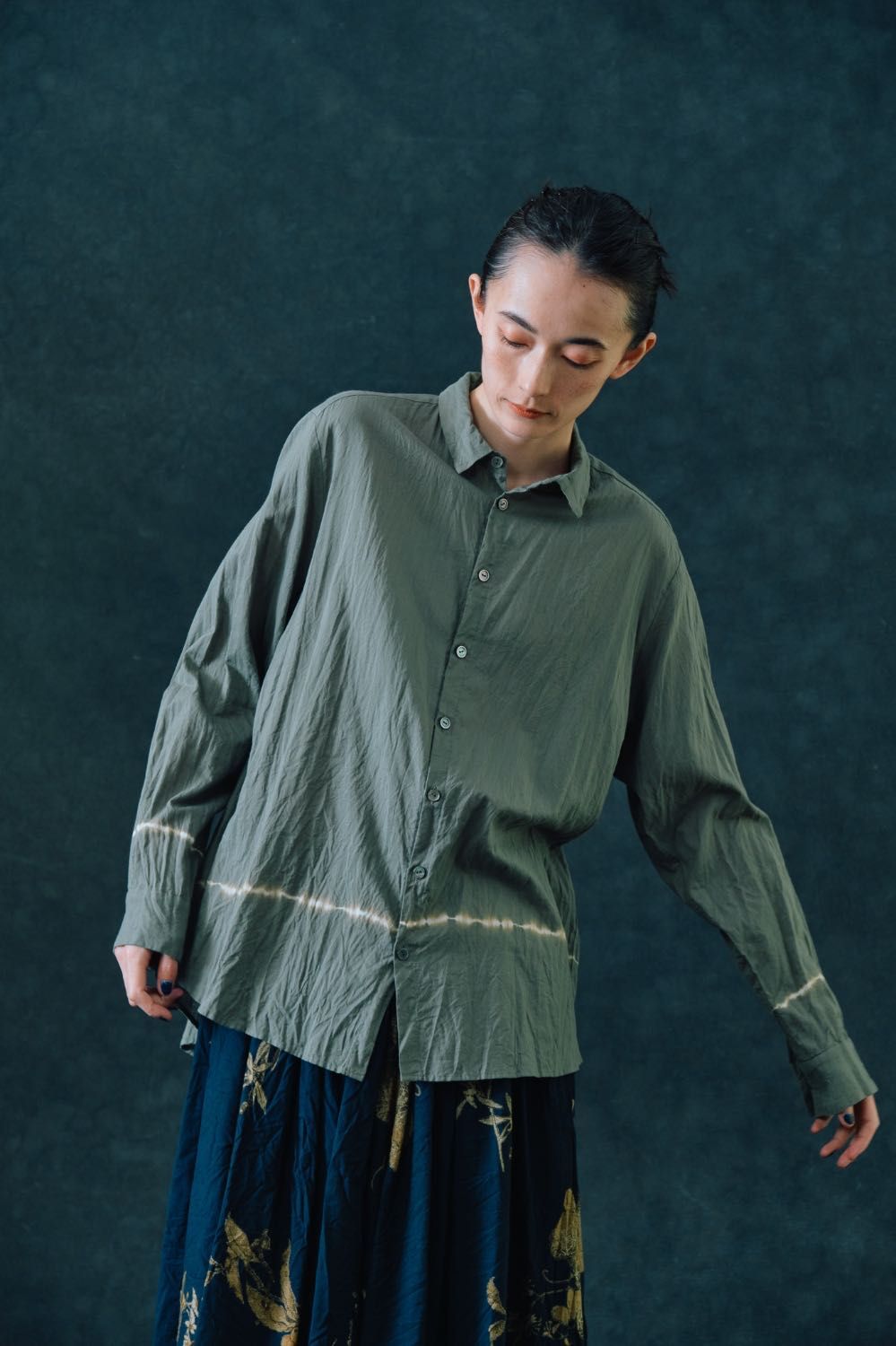細番手の糸を甘く織ることで、ふんわりとした柔らかい風合いと通気性、清涼感を惹き出した1枚です。