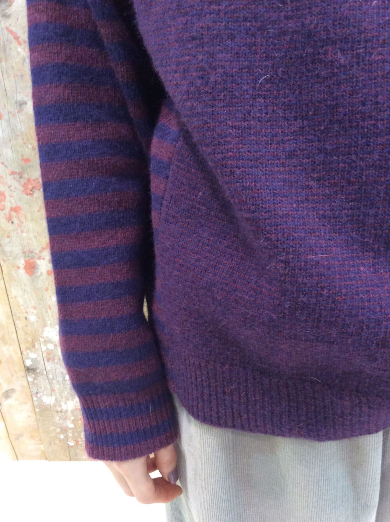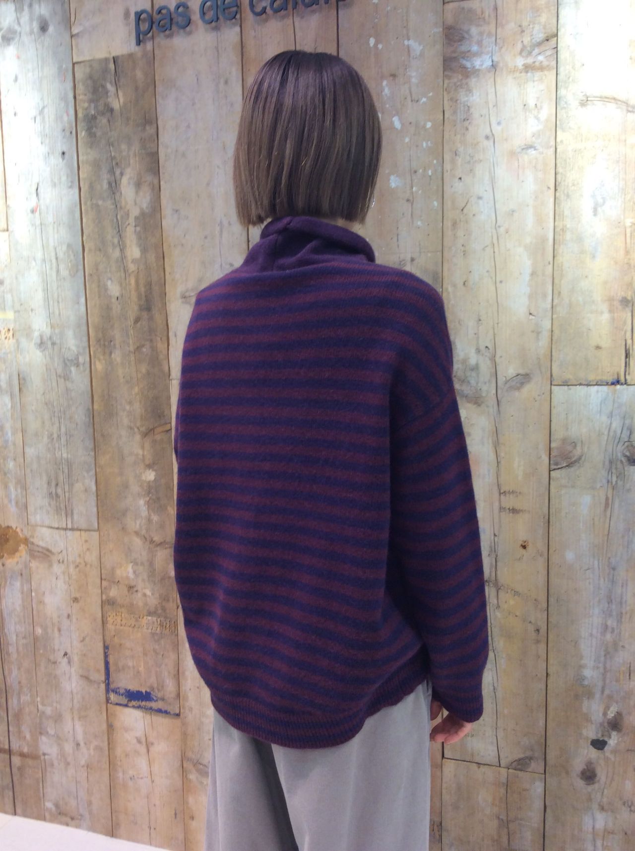 前身頃と後身頃のボーダーの幅を変え、見る角度で違う印象が楽しめます。