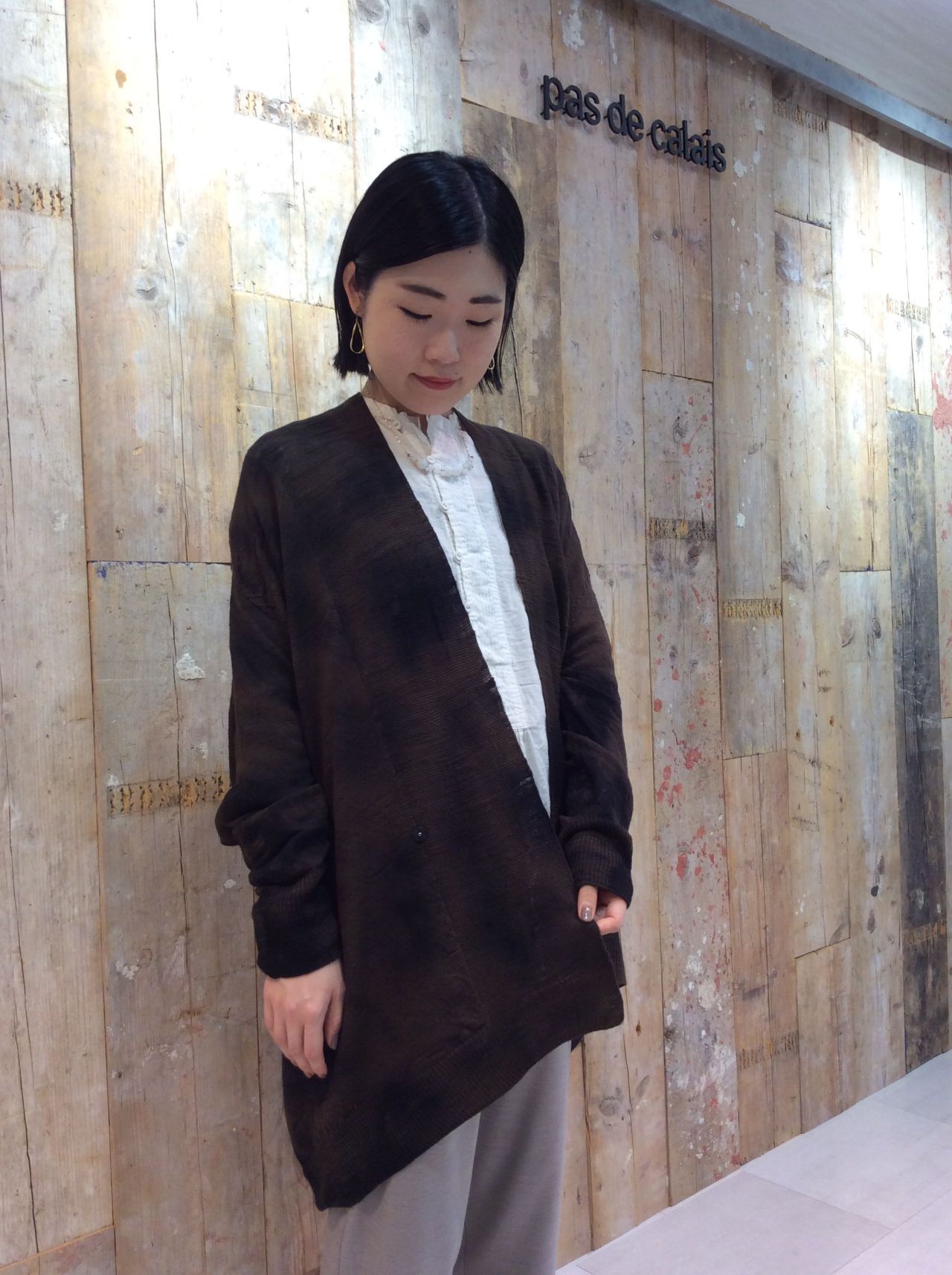 ●ムラ染めスラブ糸ホールカーディガン