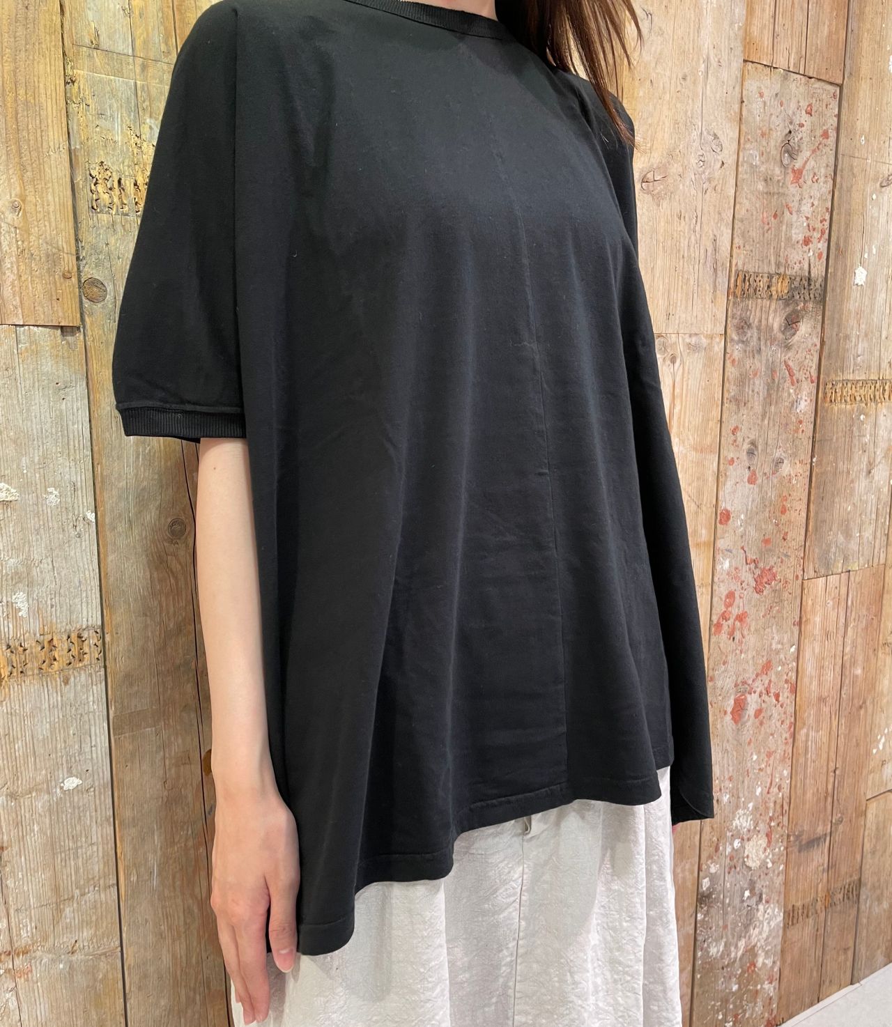 リラックス感のあるゆったりとしたシルエットで、二の腕やお尻もカバーでき夏のお出かけにもぴったりの1枚です。