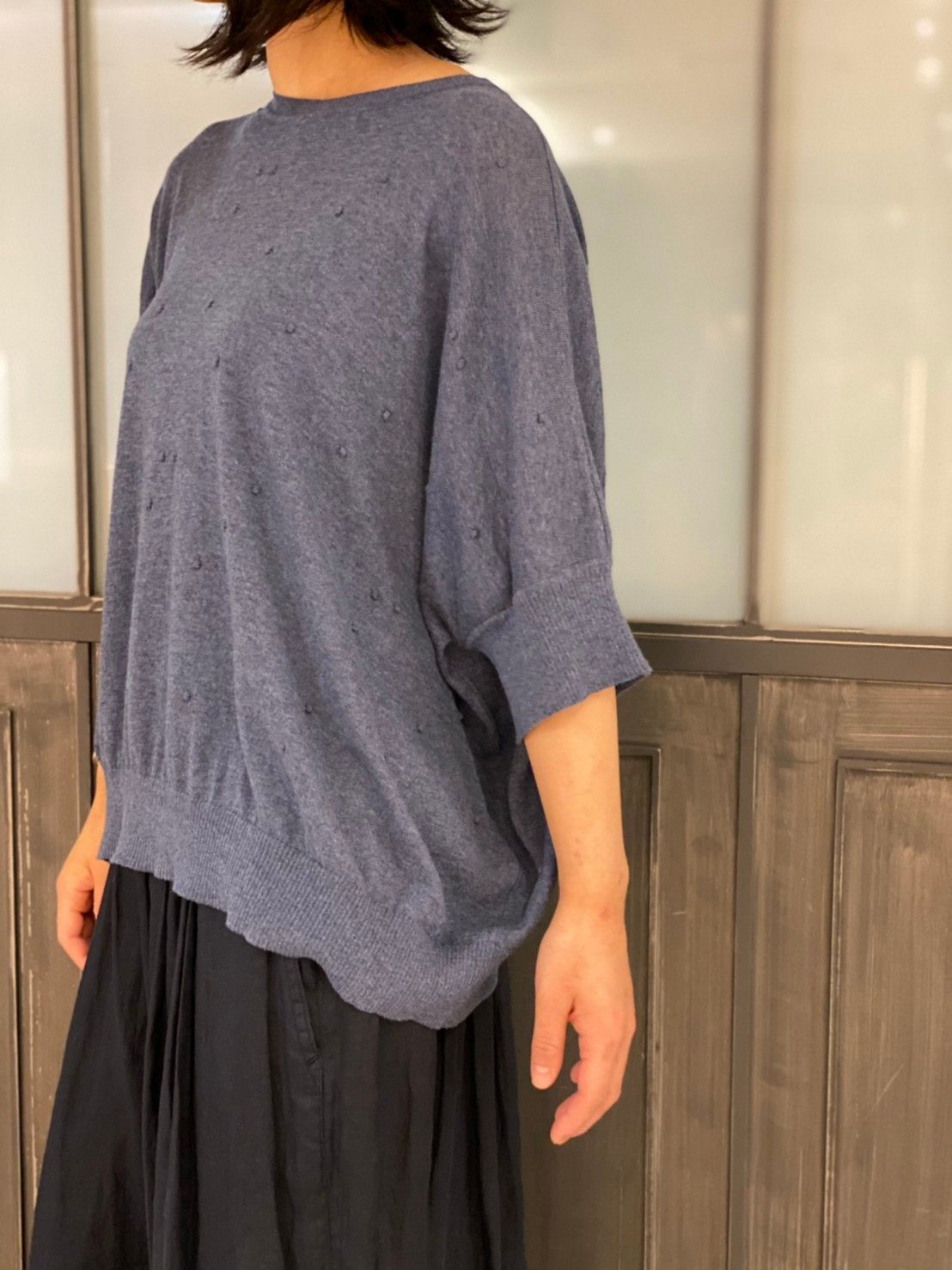 ●【5月入荷予定】ウォッシャブルコットン ドット柄編みクループルオーバー