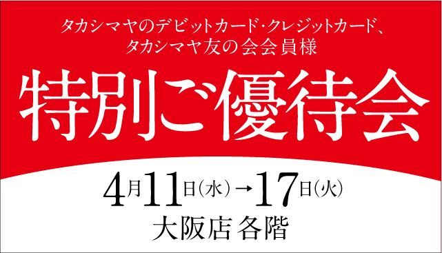 上記期間中、タカシマヤデビットカード、クレジットカード、友の会会員様は特別価格でお買い求めいただけます。