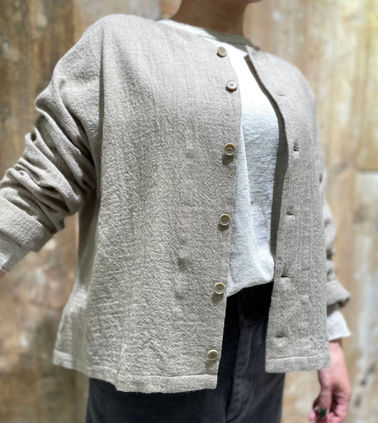 軽さが魅力のソフトなウール素材で、独特なシボ感がパドカレならでは。