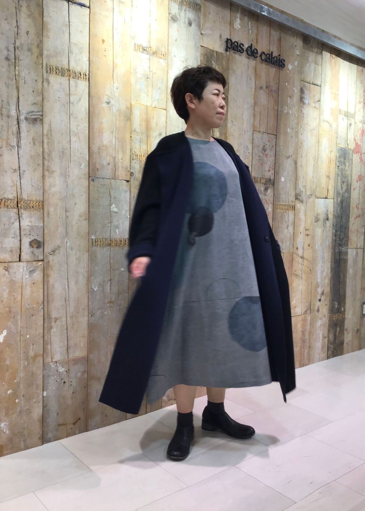 ワンピースよりたっぷりとしたドレープですが、生地が柔らかいのでスッキリ着られます。