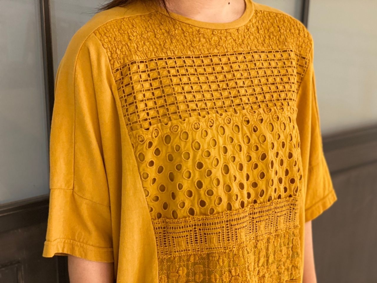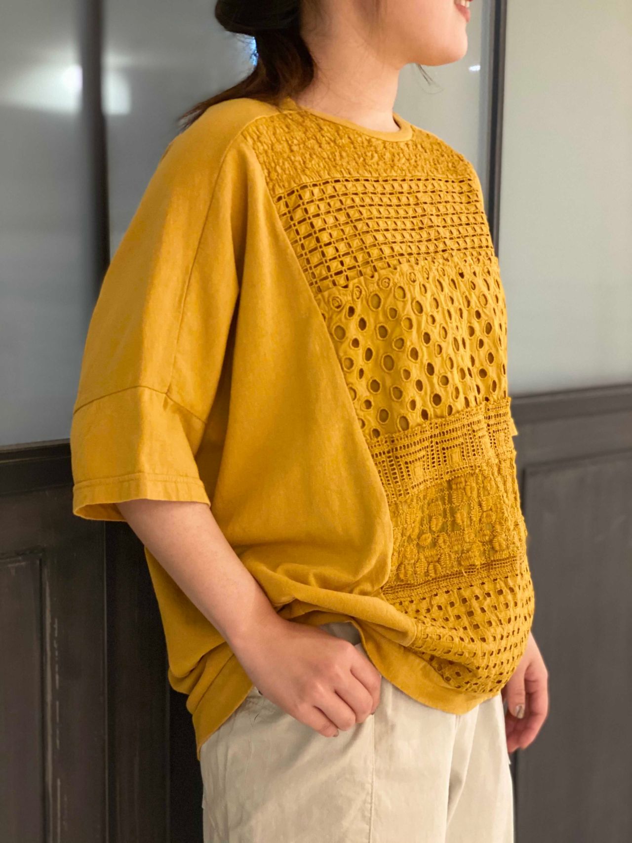 レースで女性らしさを表現しつつ、Tシャツ生地でカジュアルな印象もある一枚。