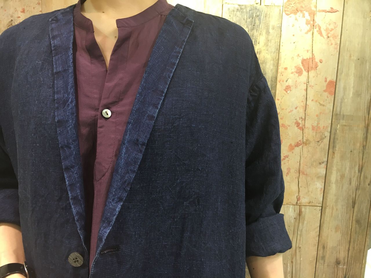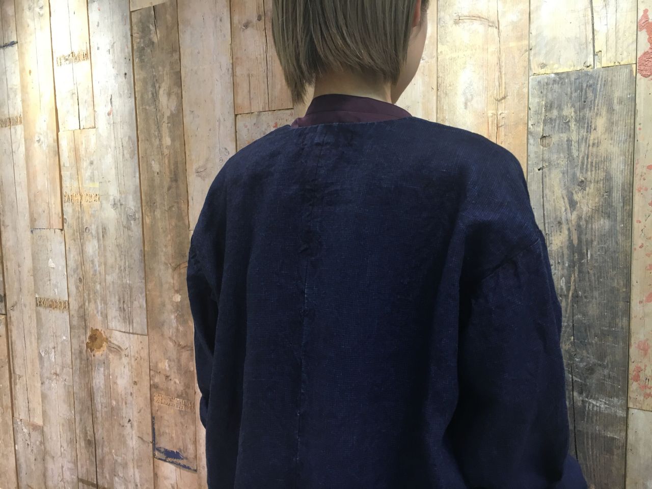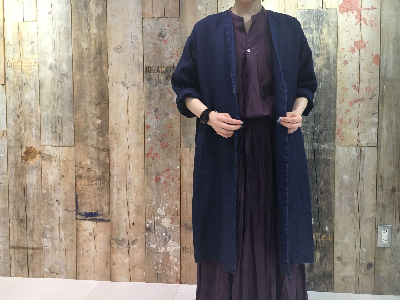 リネンの素材感とインディゴの風合いを楽しめるコートです。