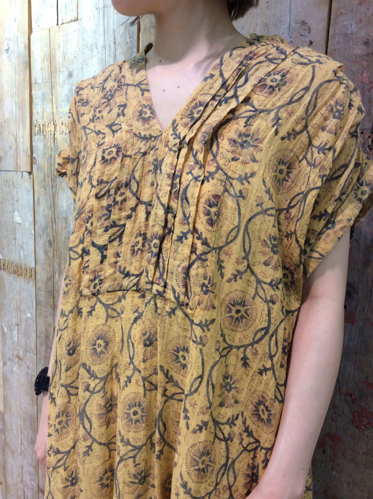 本日ご紹介するのは、ブロックプリントの植物柄が涼しげな、綿素材のワンピースです。