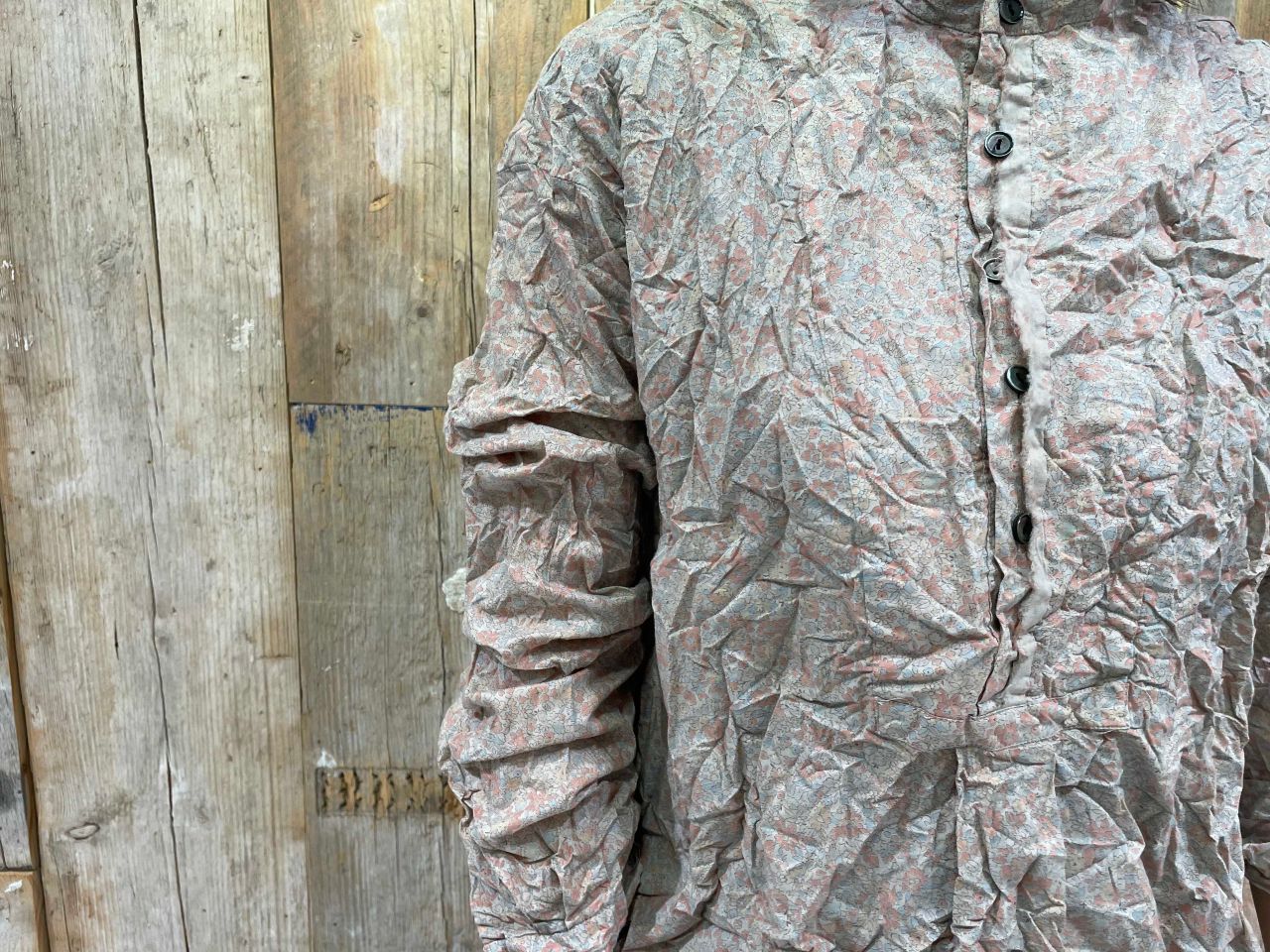 綿麻素材で、小さな釜で少量づつ揉み込み染色することで、独特の風合いとしシワ感を表現。