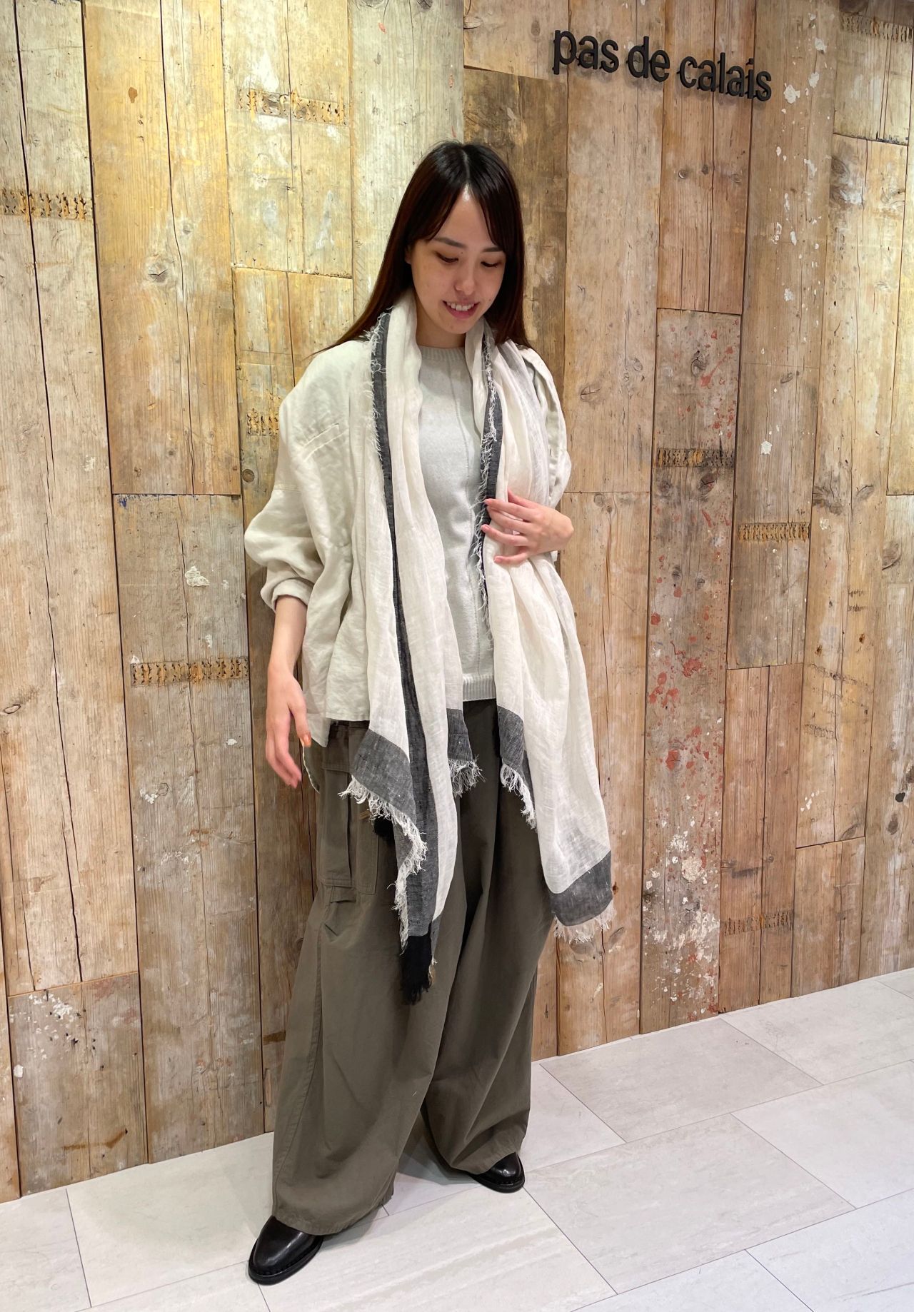 col.アイボリー(着用)/グレー/チャコール