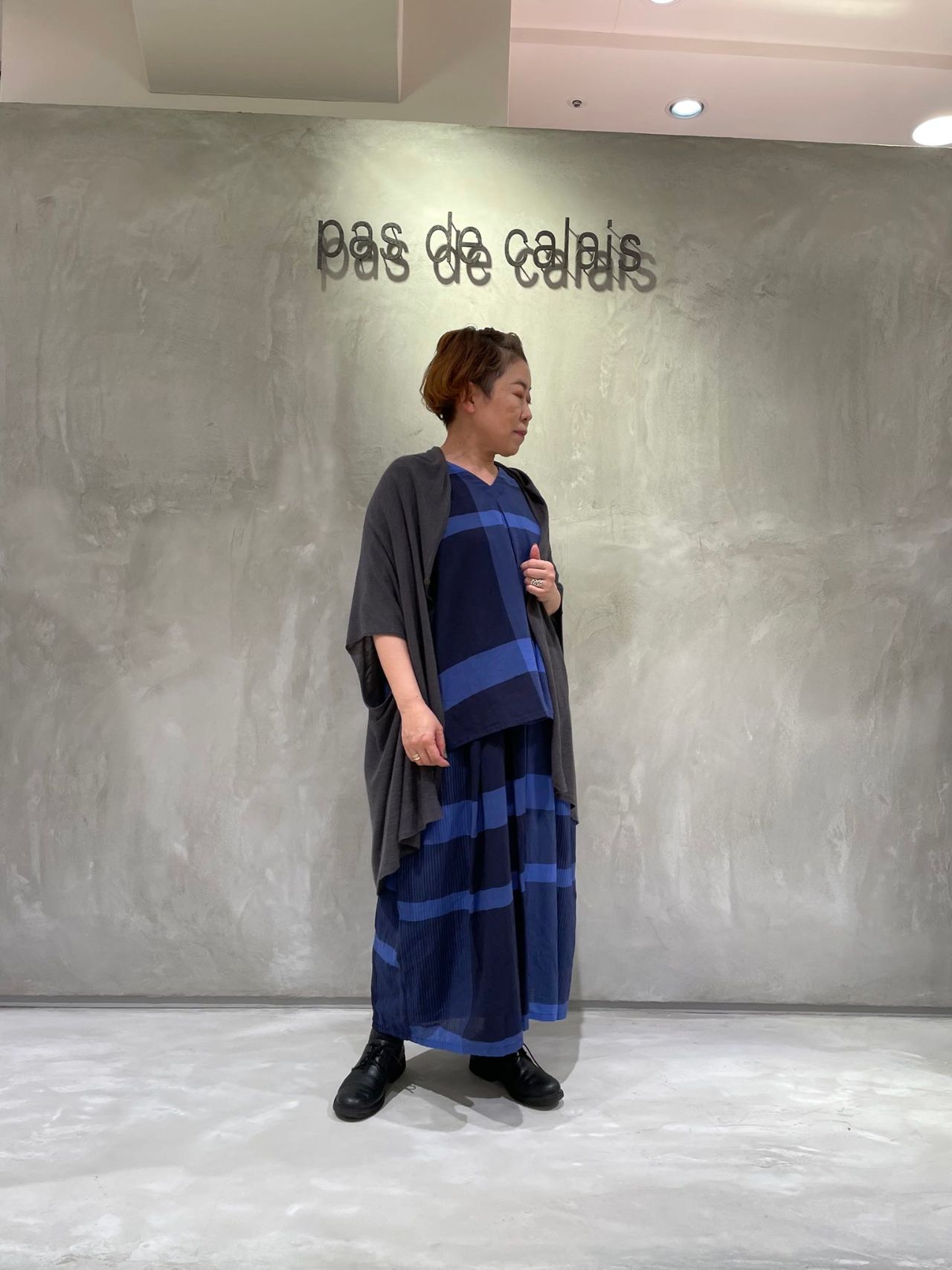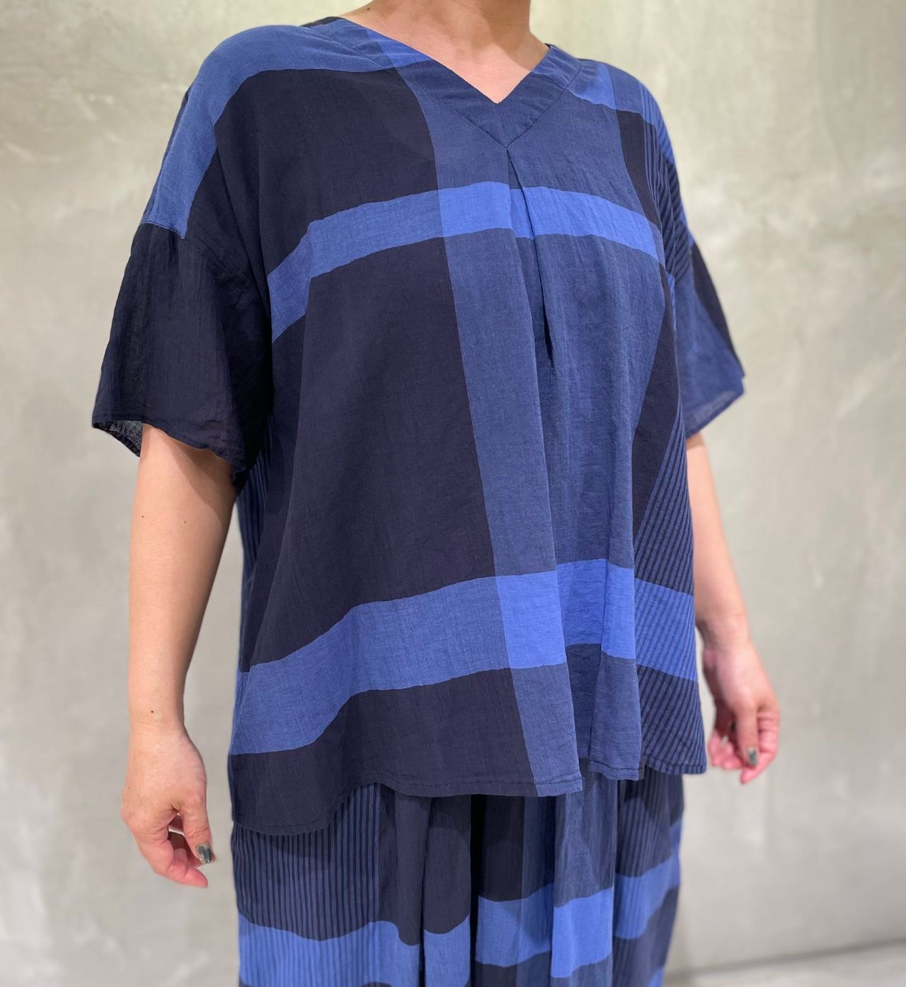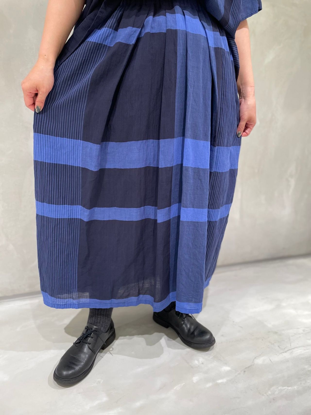 風が抜けるたっぷりとした身幅の涼しげなブラウスと、広がり過ぎないコクーンシルエットのスカートは、セットアップでもシンプルなアイテムと合わせても。