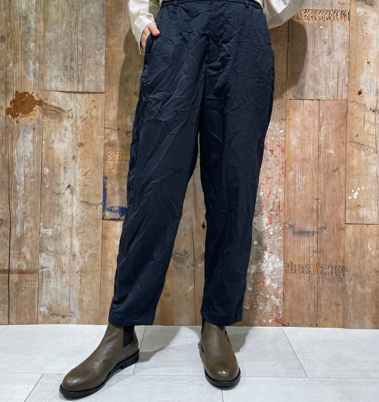 パンツはテーパードタイプで、適度にゆとりがある履き心地の良い一枚。