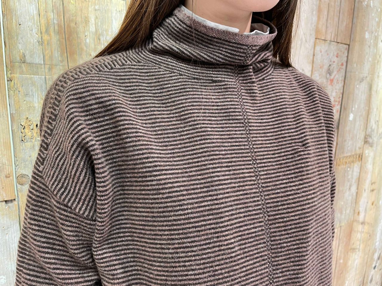 糸の繊維の中が空気を多く含む構造になっているため、ソフトで軽く1枚でも暖かく着て頂けます。