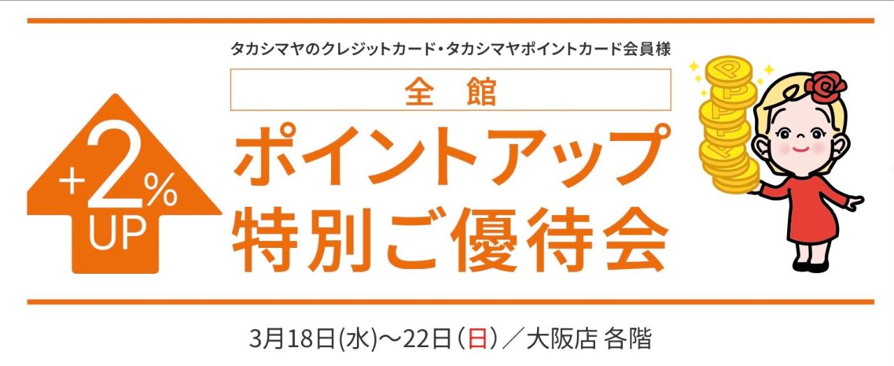 タカシマヤのクレジットカード・ポイントカード会員様、【全館ポイントアップポイントアップ特別ご優待会】開催中。
