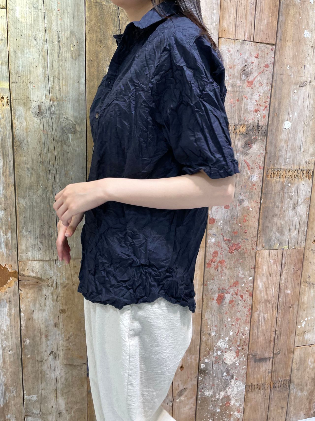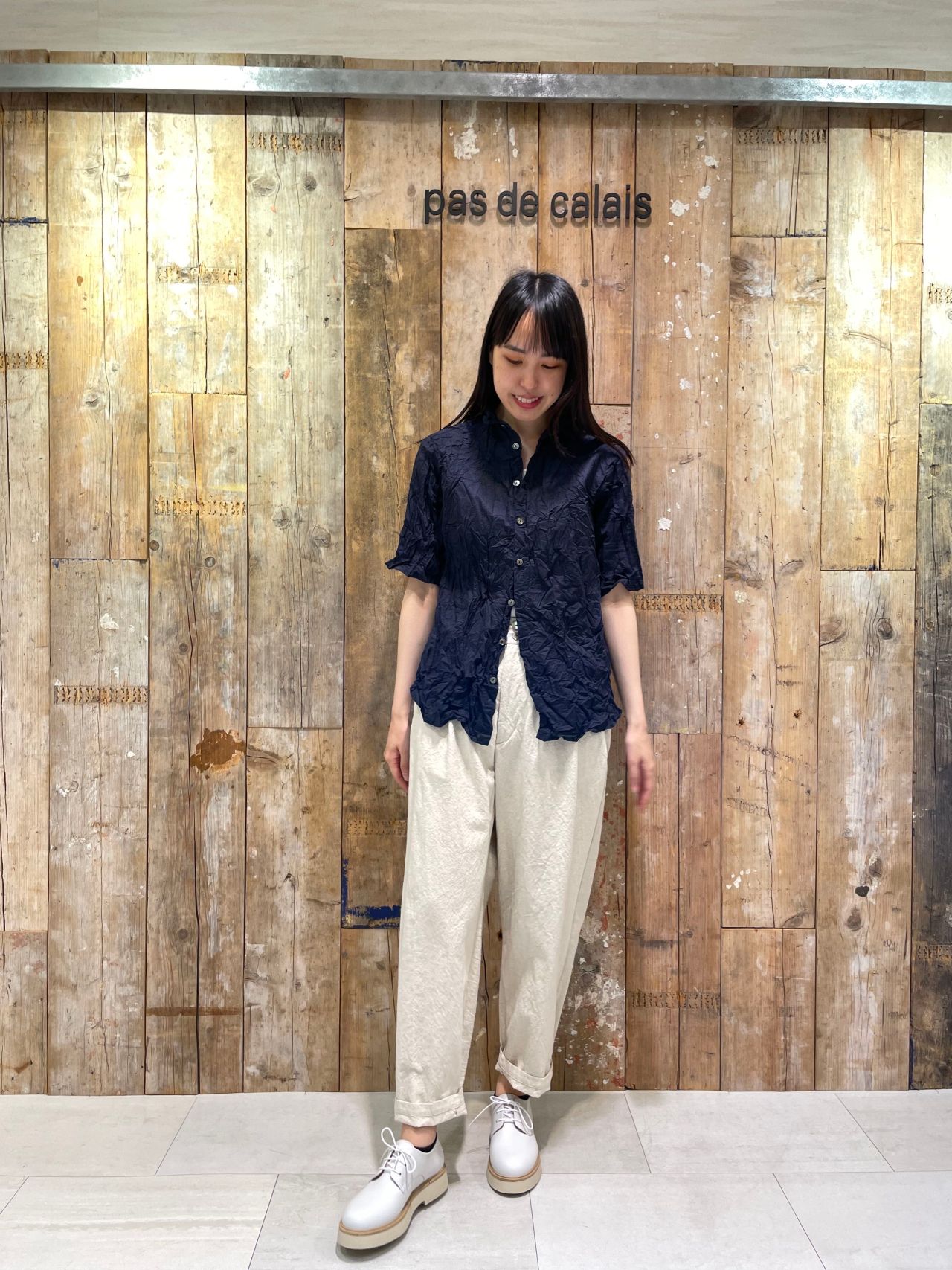 製品硫化染めで独特な風合いにを楽しむことができ、前身頃のボタン部分には四角い刺繍を施しているのもパドカレならではのポイント。