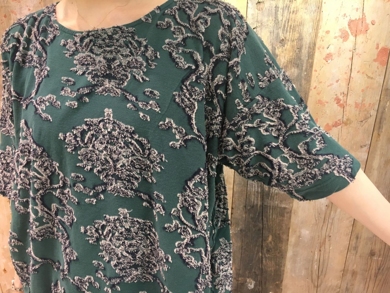 立体的な柄が目を惹くプルオーバー。