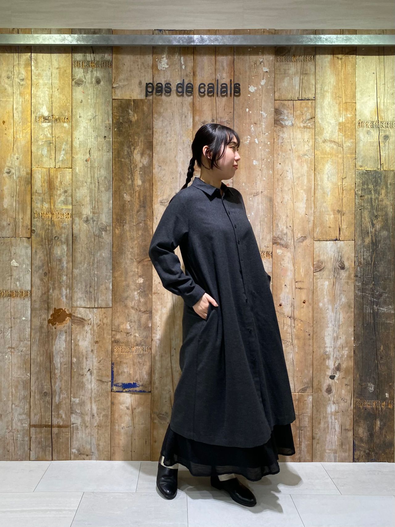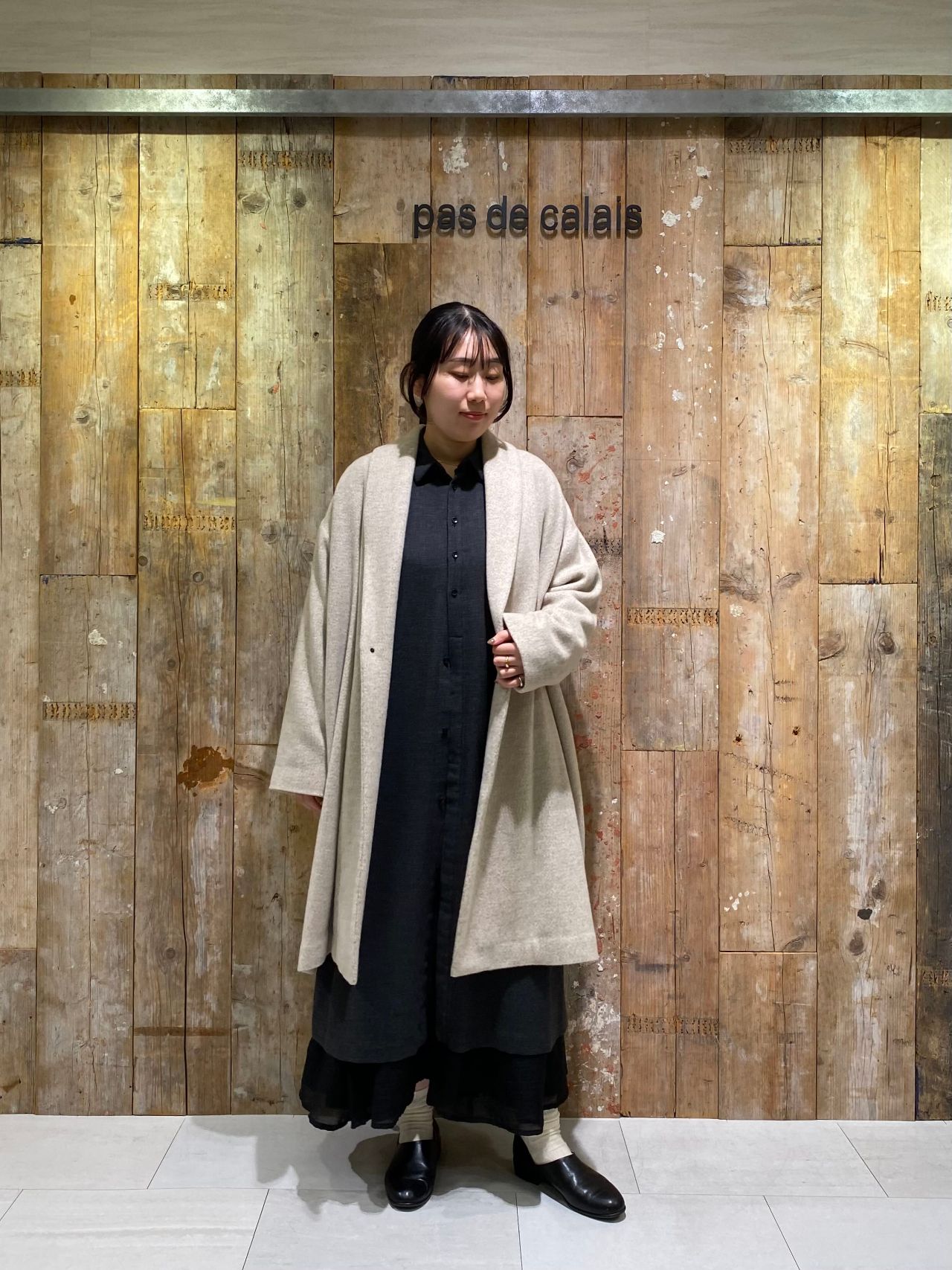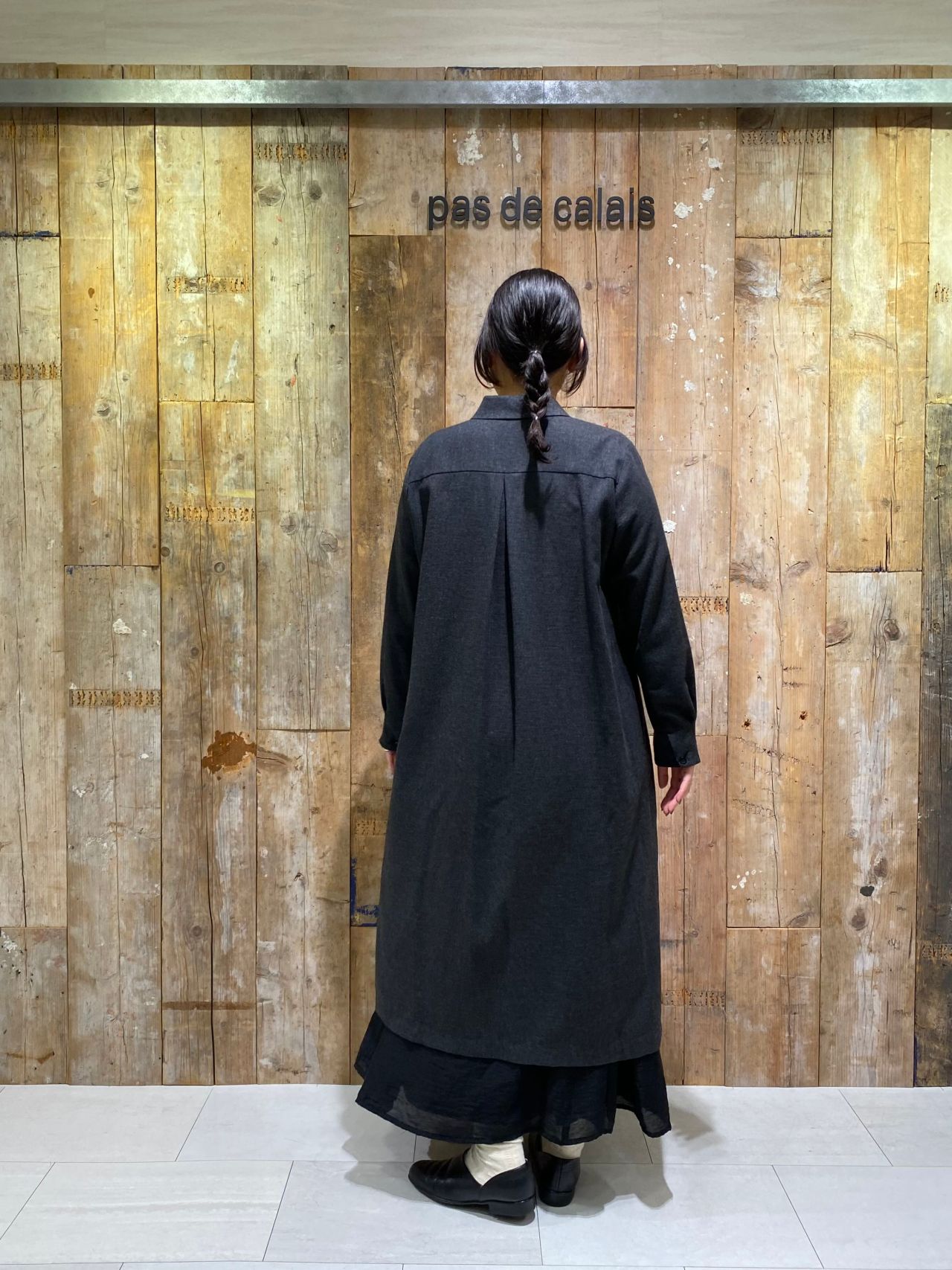 合わせたのは、たっぷりしたシルエットのガウンコート。