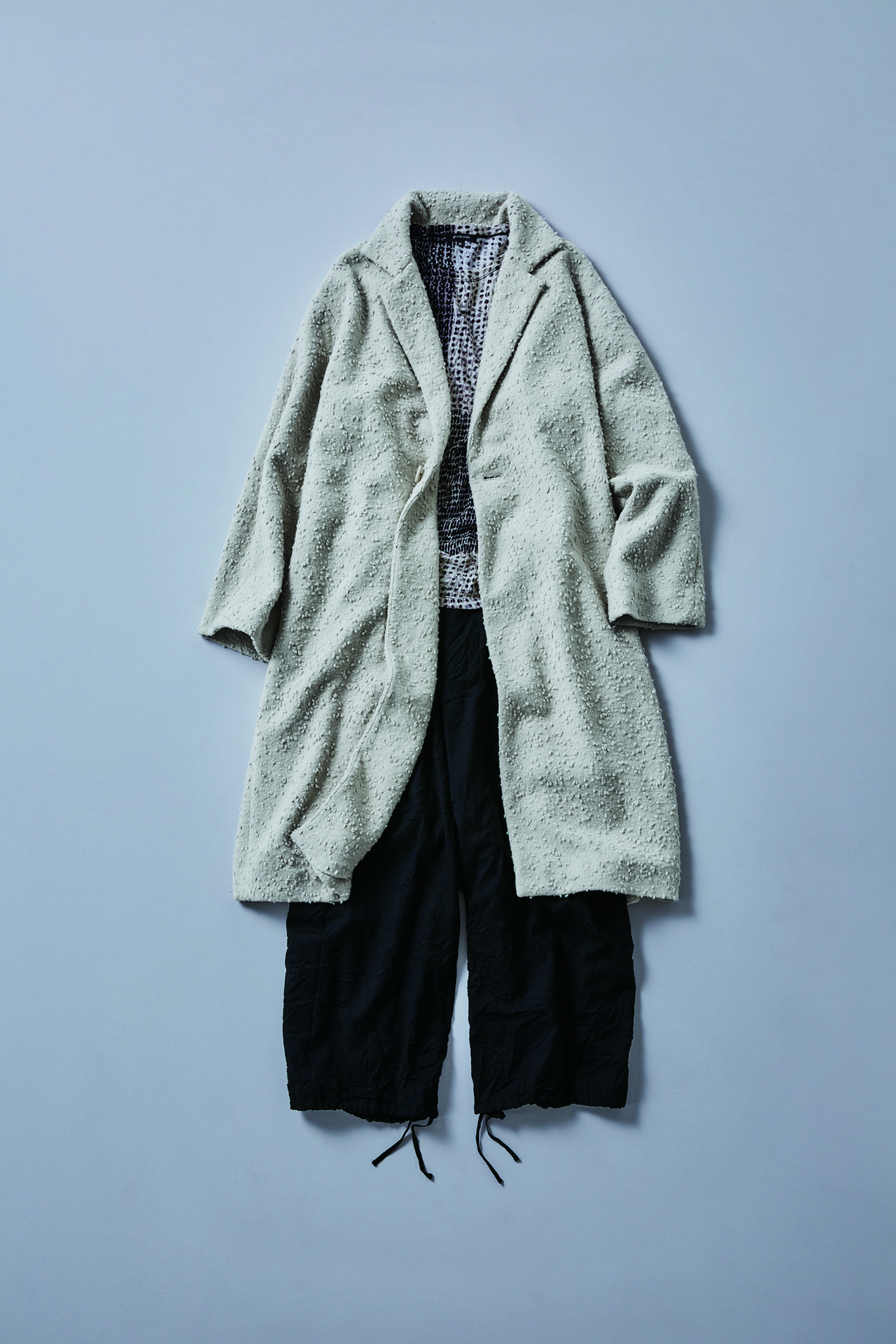 生地表面のツブツブとした❝ノット❞がほどよい存在感のチェスターコート