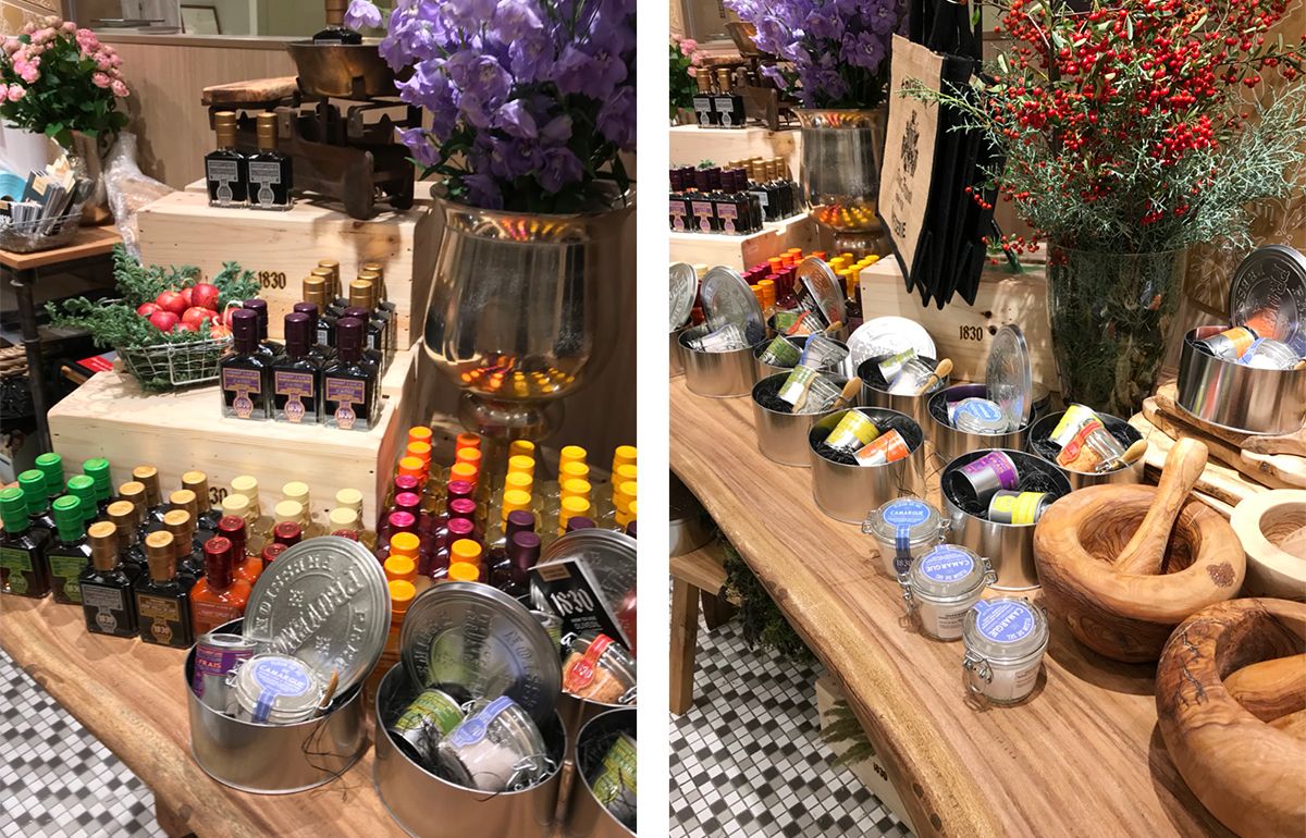 フレーバリー・オリーブオイルをはじめ、人気のトリュフ塩やコンフィチュールが揃います。