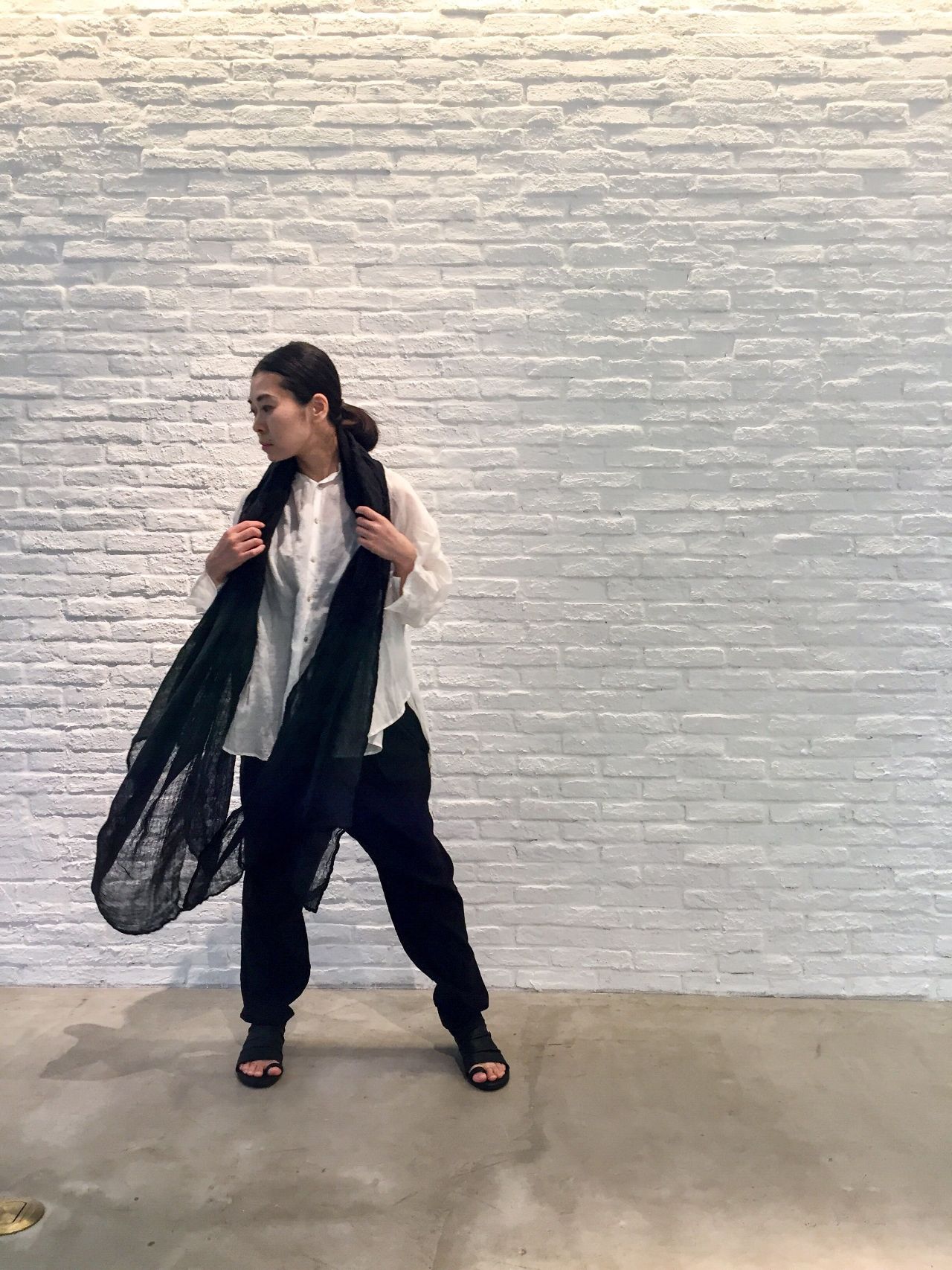 -Autour du Louvre-Lensルーブル美術館ランス別館 とパドカレのコラボレーション炭染めストールを合わせたスタイリングをご紹介いたします。
