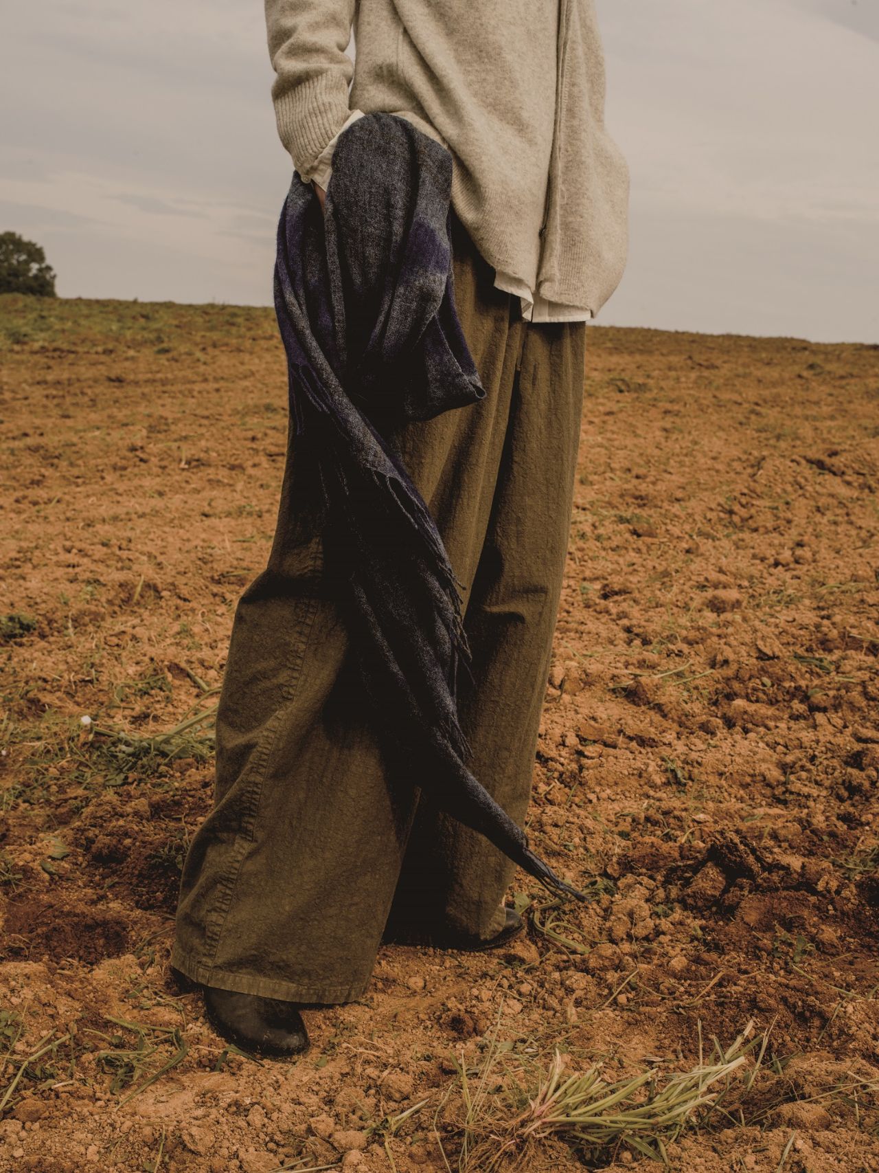 スコットランドに生息する英国羊毛とリネンを国内の尾州で織り上げました。