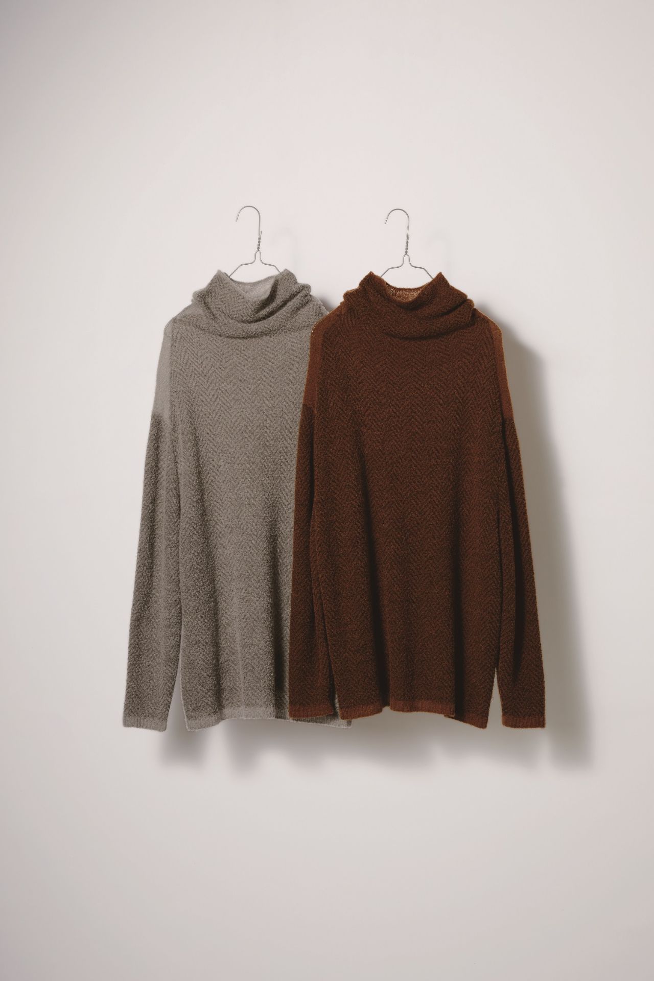 空に最も近い繊維と称される"ヤク"のタートルニットプルオーバー。