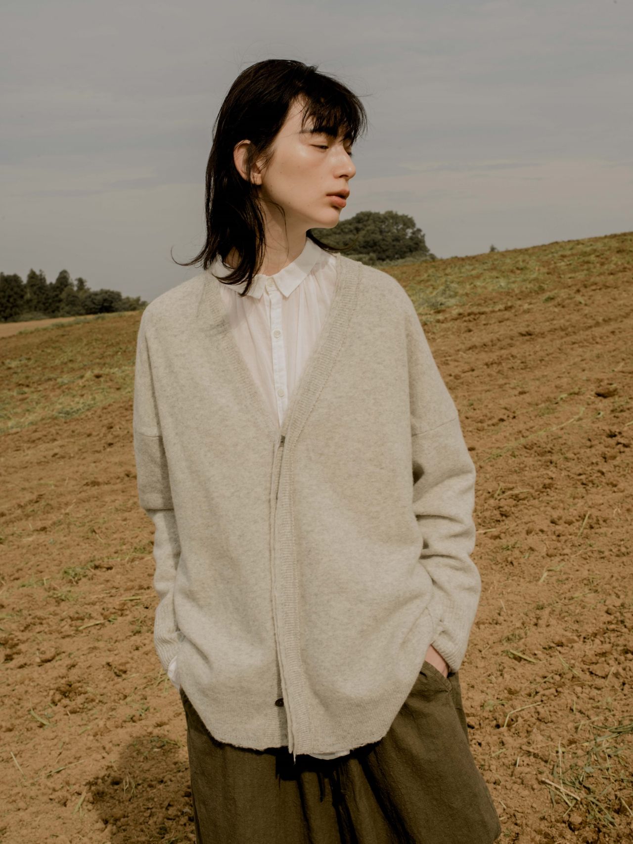 カシミヤブレンドの上質なソフトウールヤーンカーディガン。