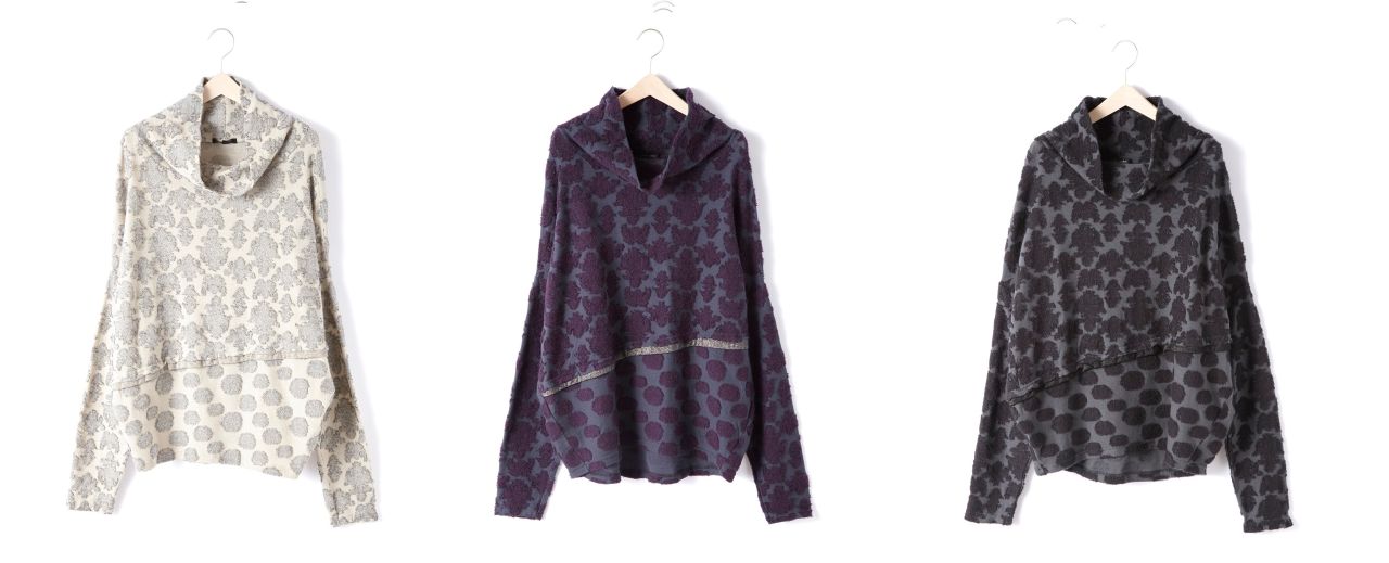 コットンモヘアジャガードでオーナメントとドットの柄を表現したオフタートル。
