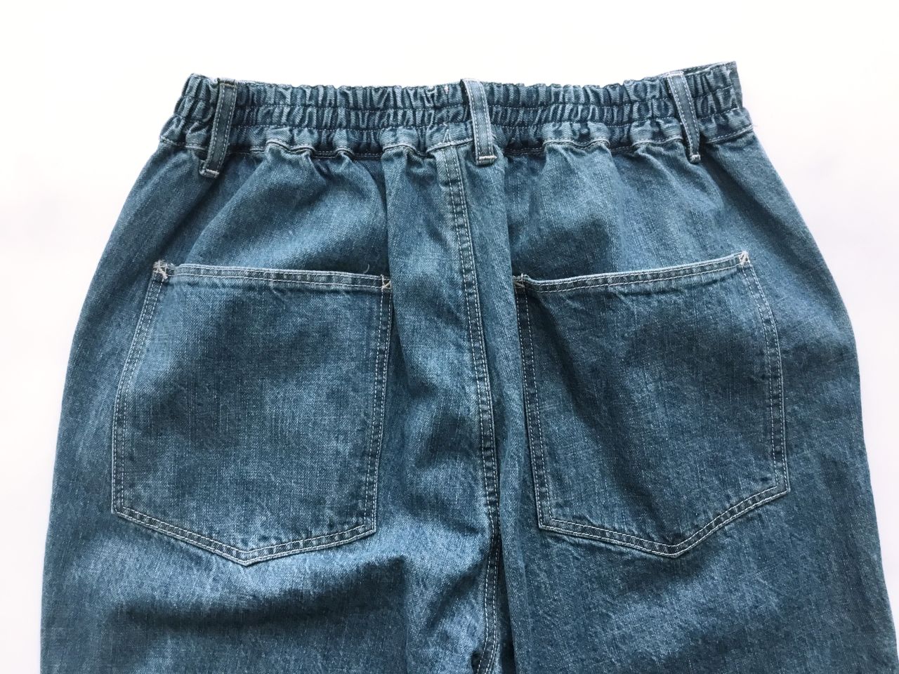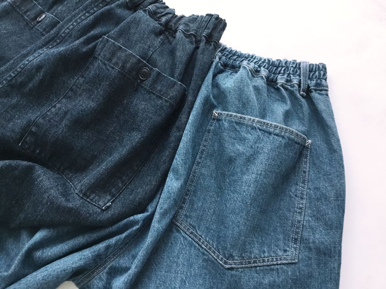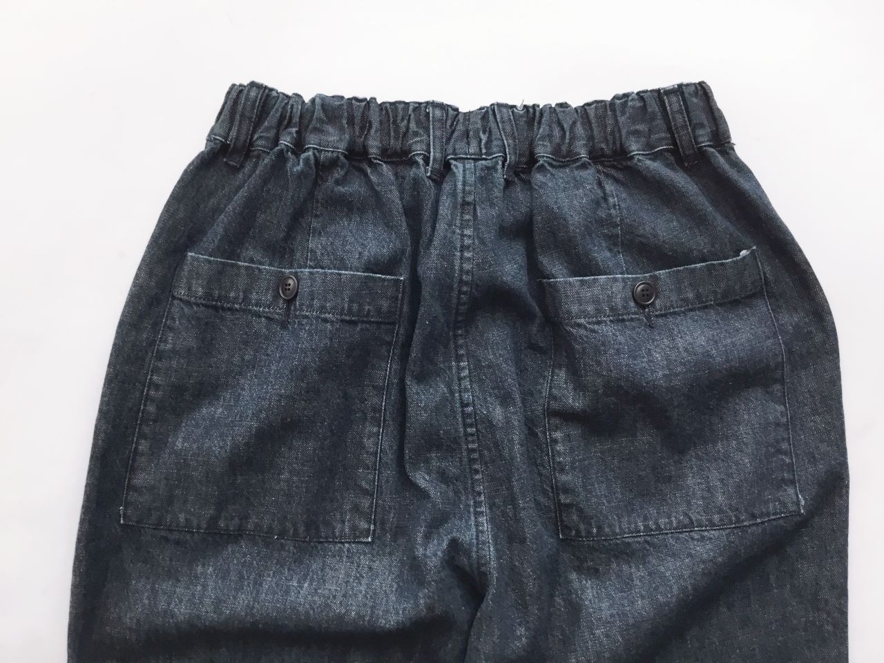 バックポケット。ワイドパンツにはボタンも。