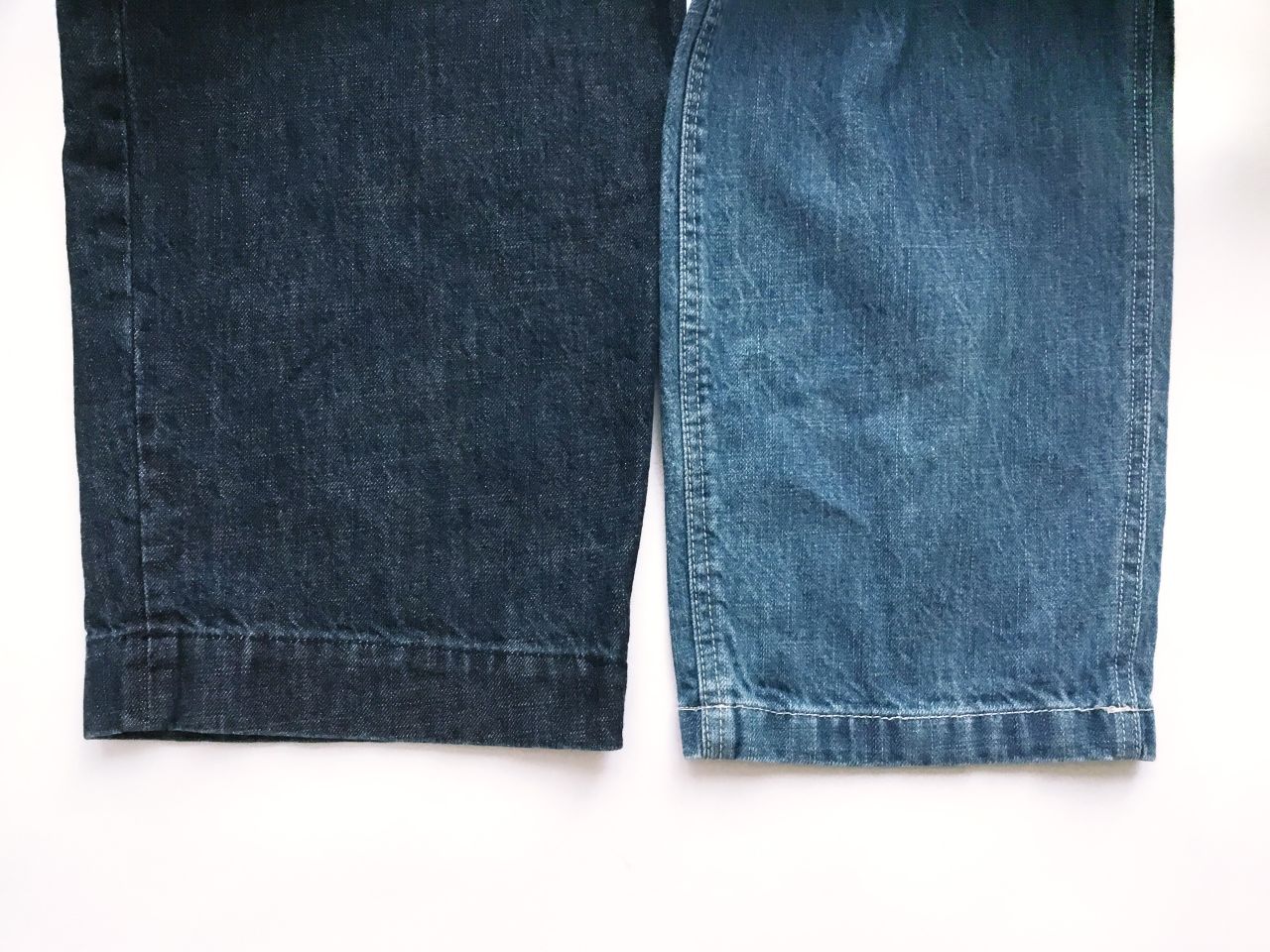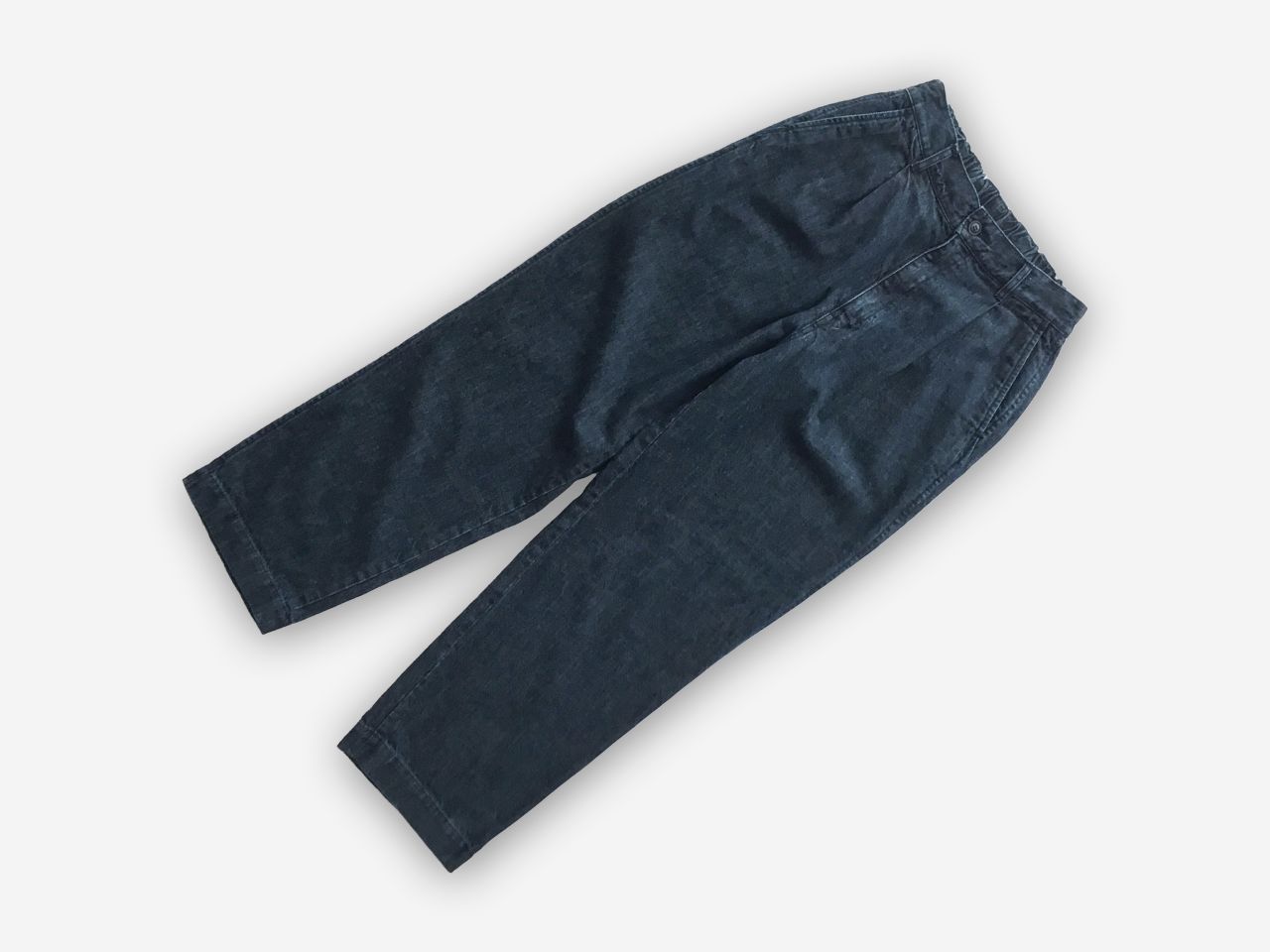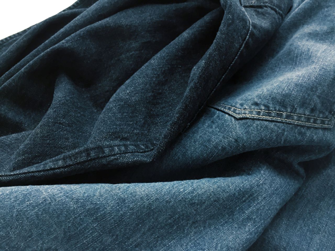 一般的なコットンデニムと違いリネンの光沢感とハリ感が生まれ、後加工する事でしなやかな肌触りで使うほどに柔らかくなります。