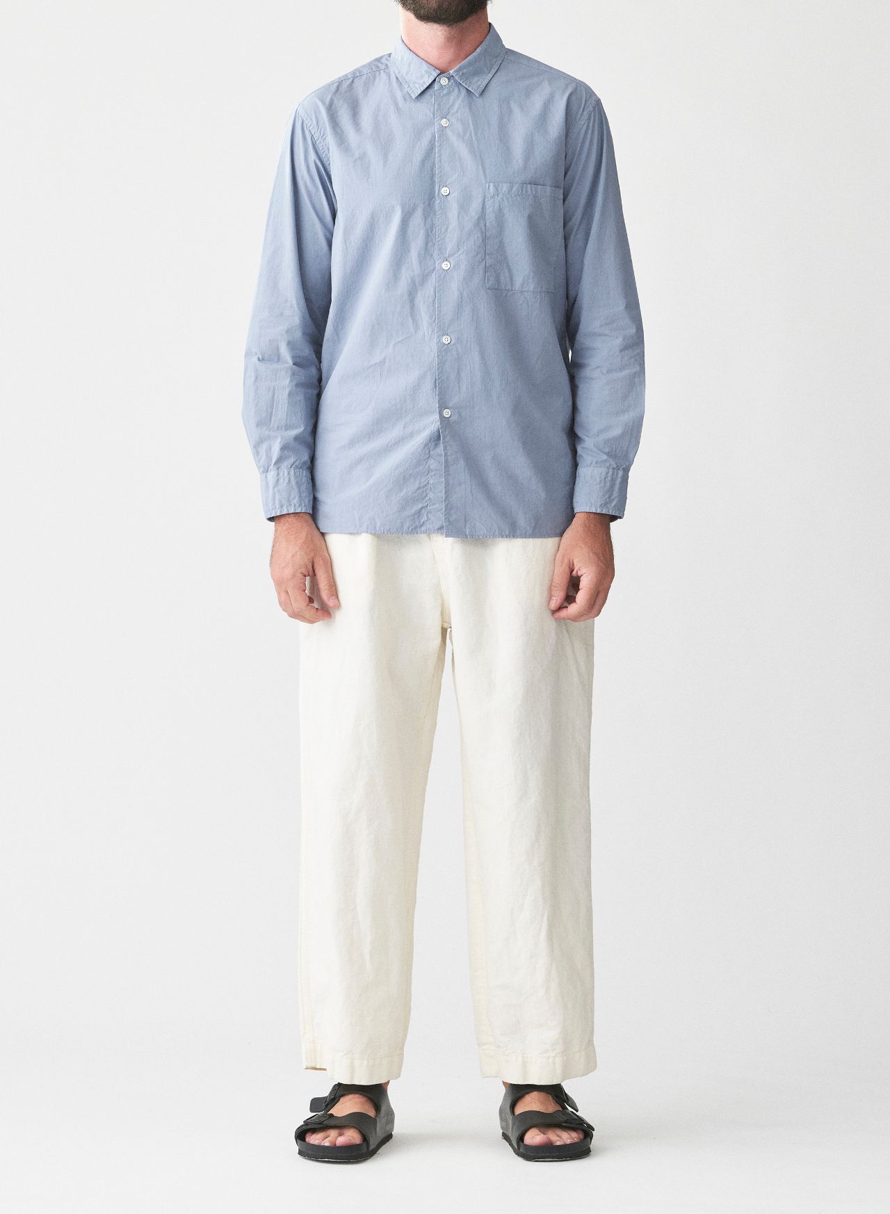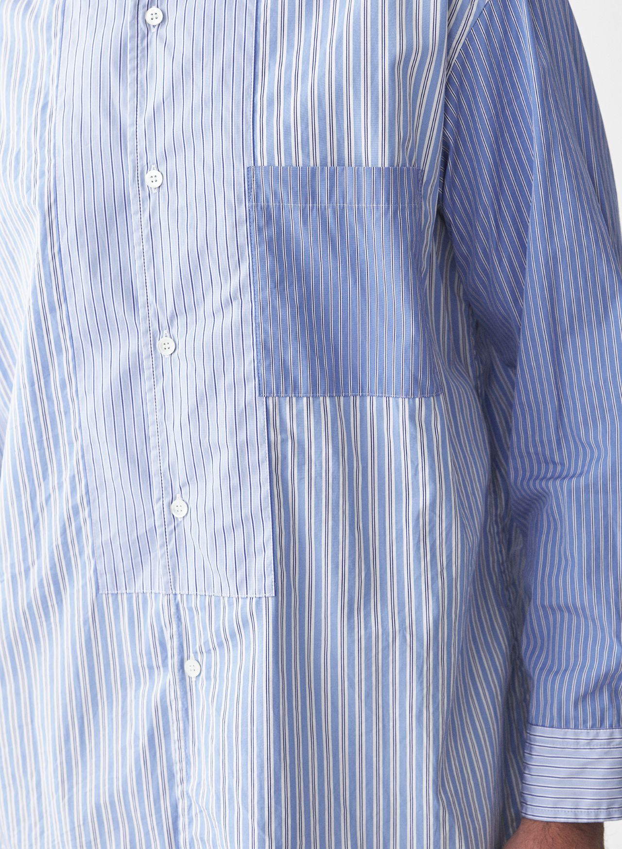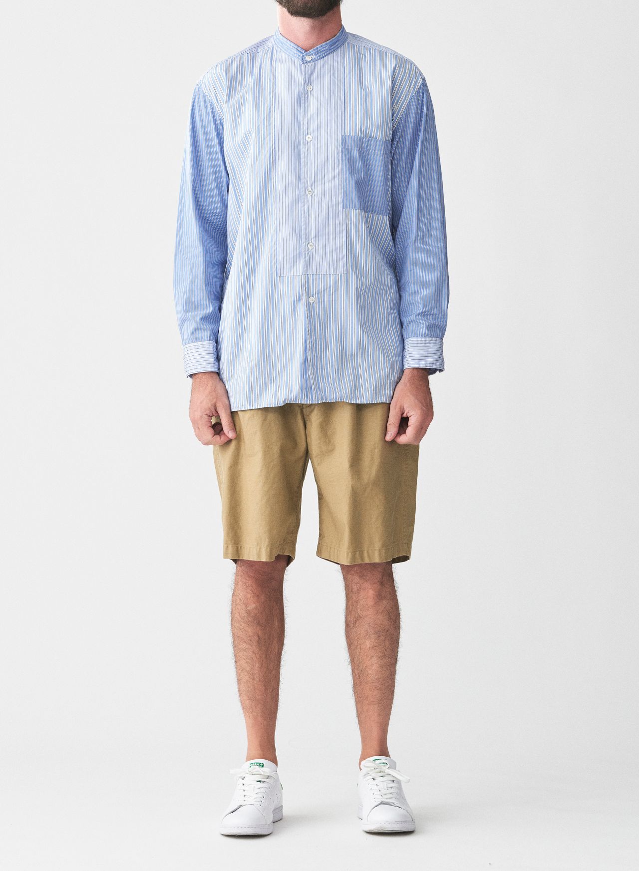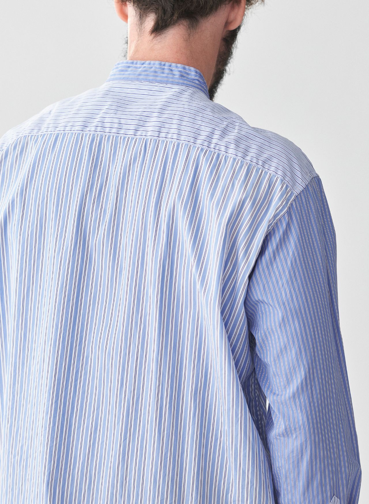 ・【SALE】THOMAS MASON先染ストライプ パッチワークスタンドカラーロングシャツ 31406147