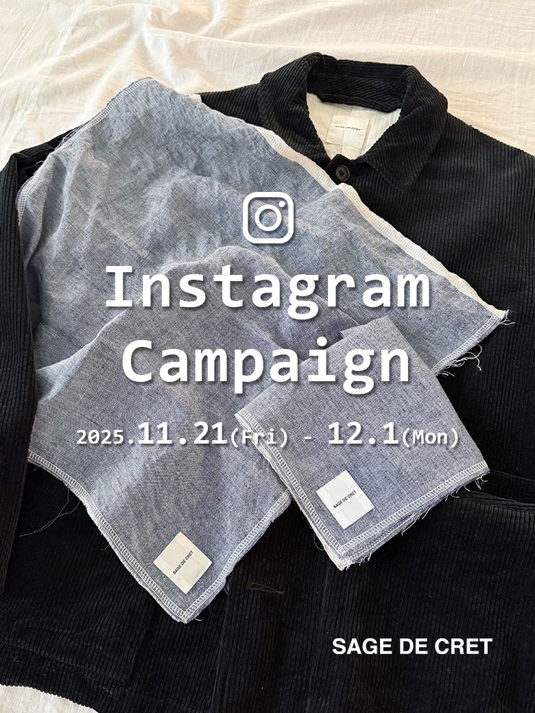 サージュデクレのオフィシャルアカウント @sagedecret_official_jp をフォローして、「いいね!」していただいた方の中から抽選で5名様にSAGE DE CRETオリジナルのバンダナをプレゼントいたします。シャンブレー生地の端のミミを生かした、切りっぱなしデザインのバンダナです。