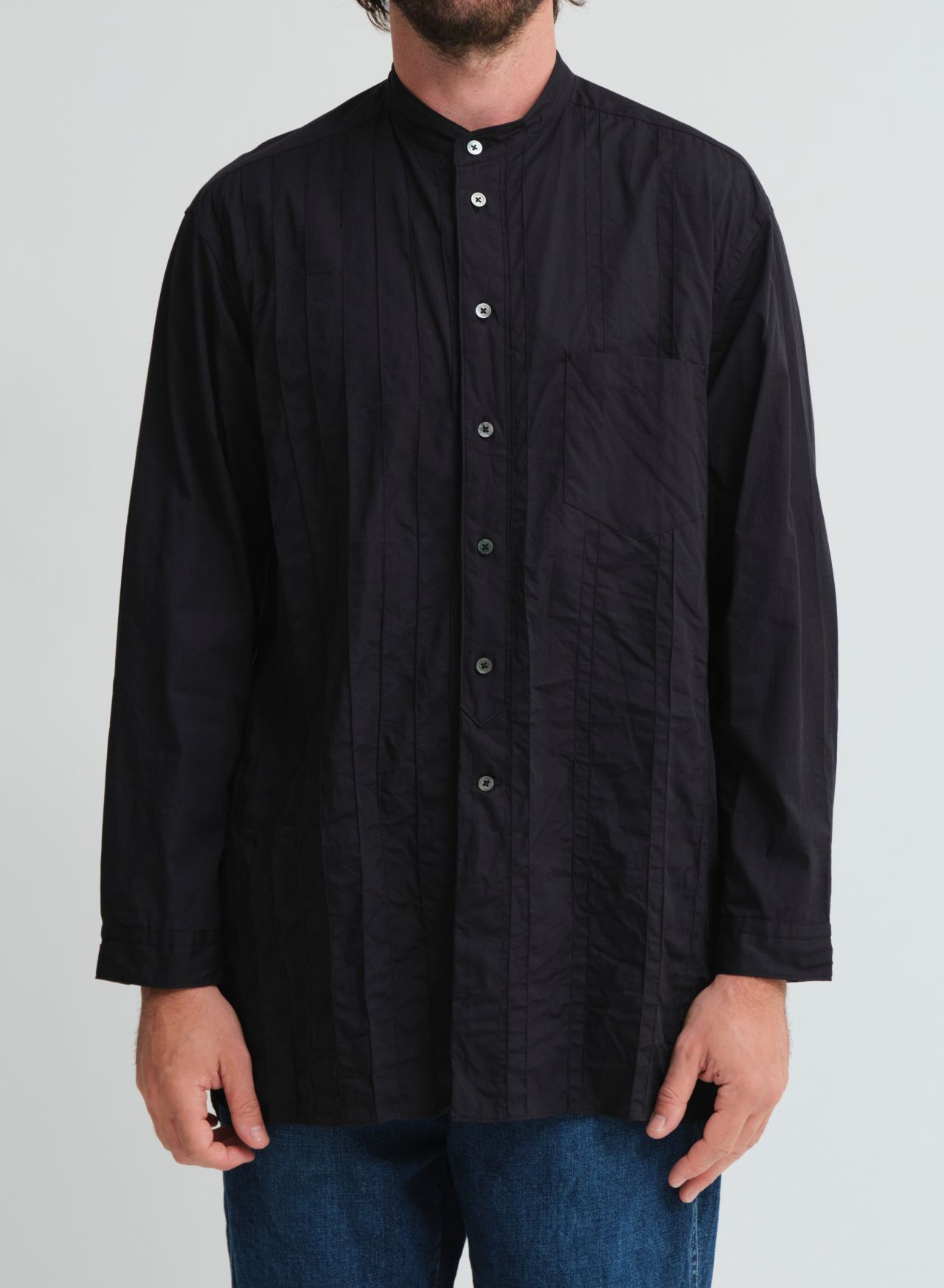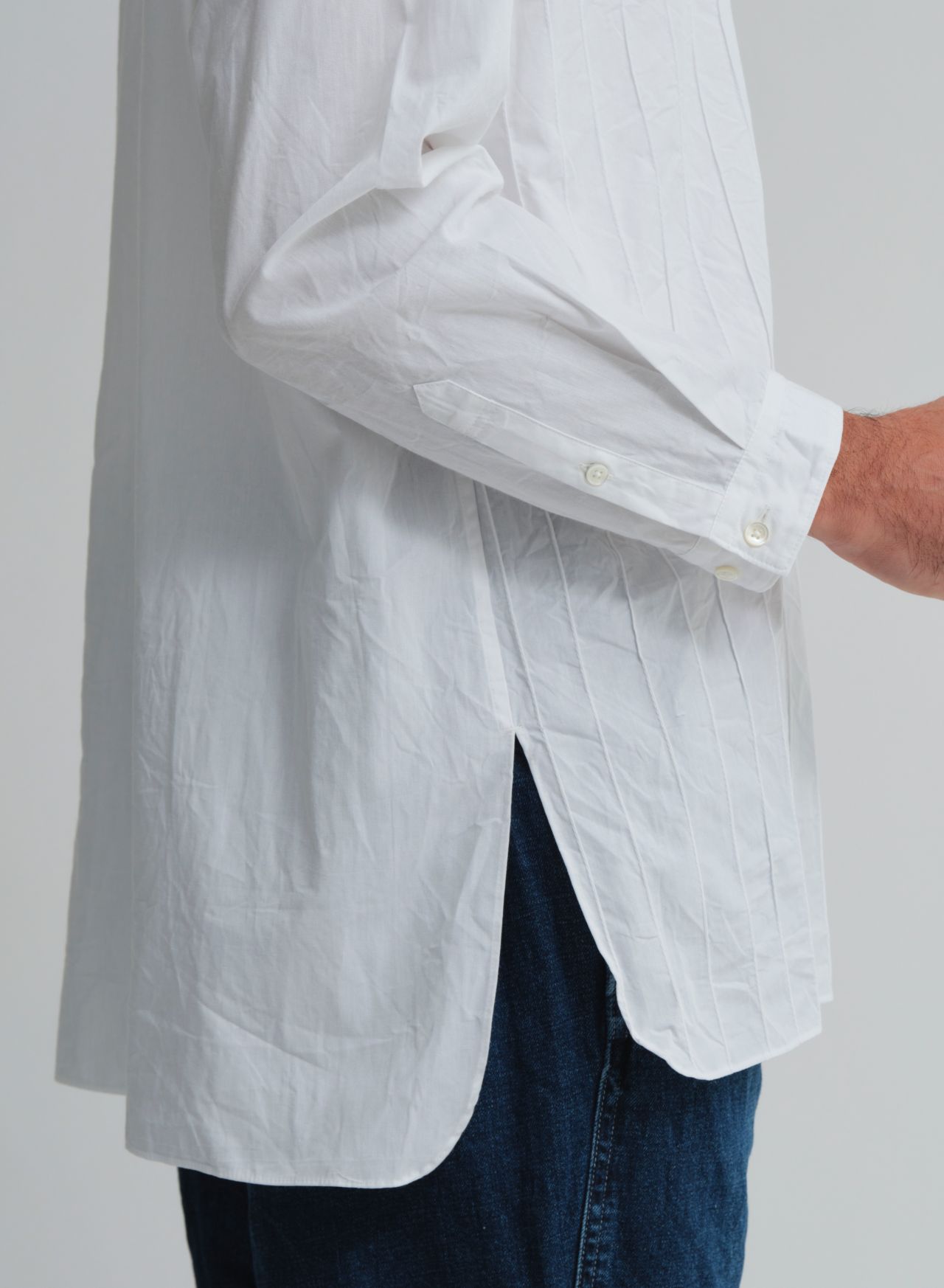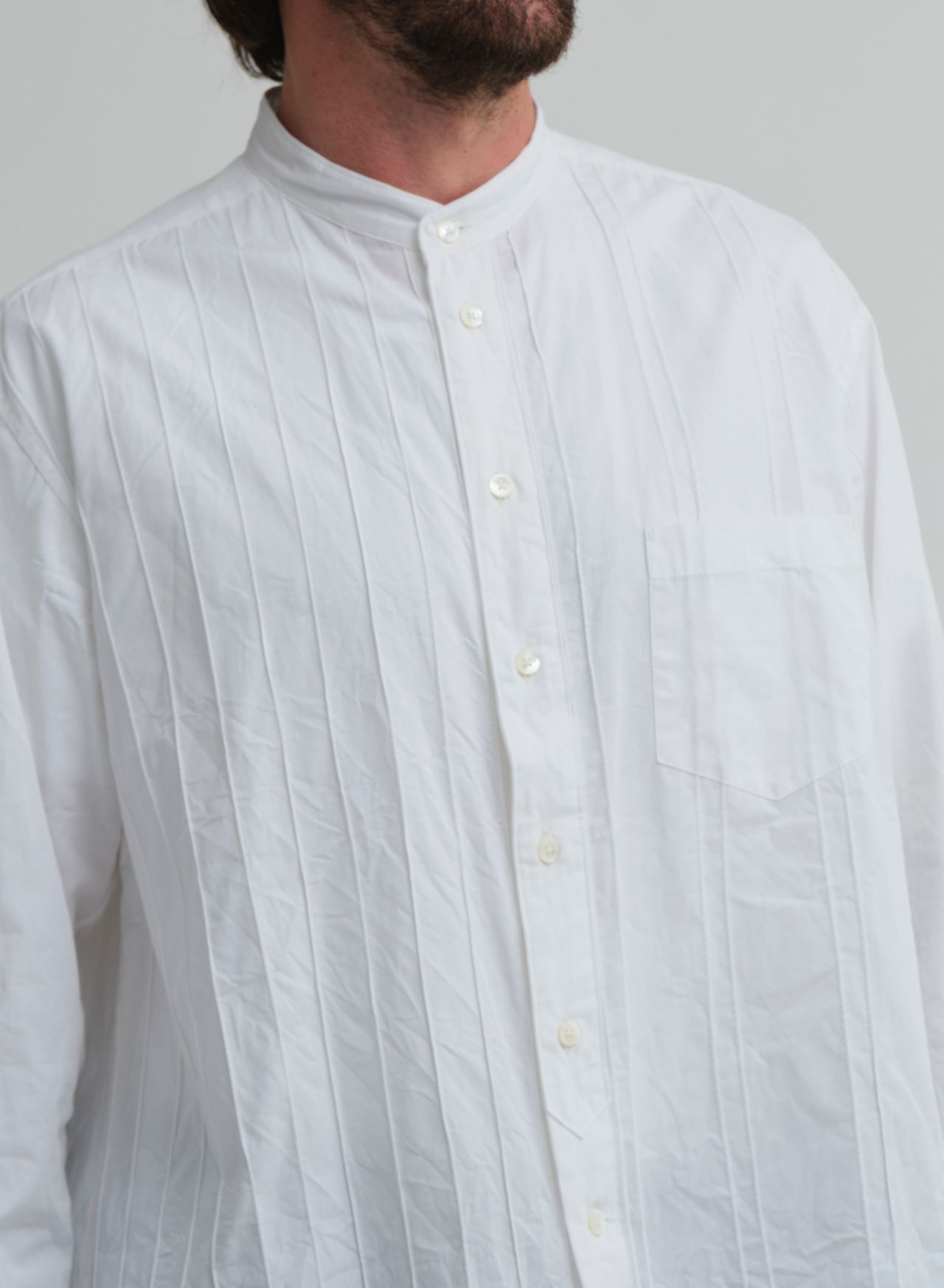・ピンタックパッチワークスタンドカラーロングシャツ 31506189
