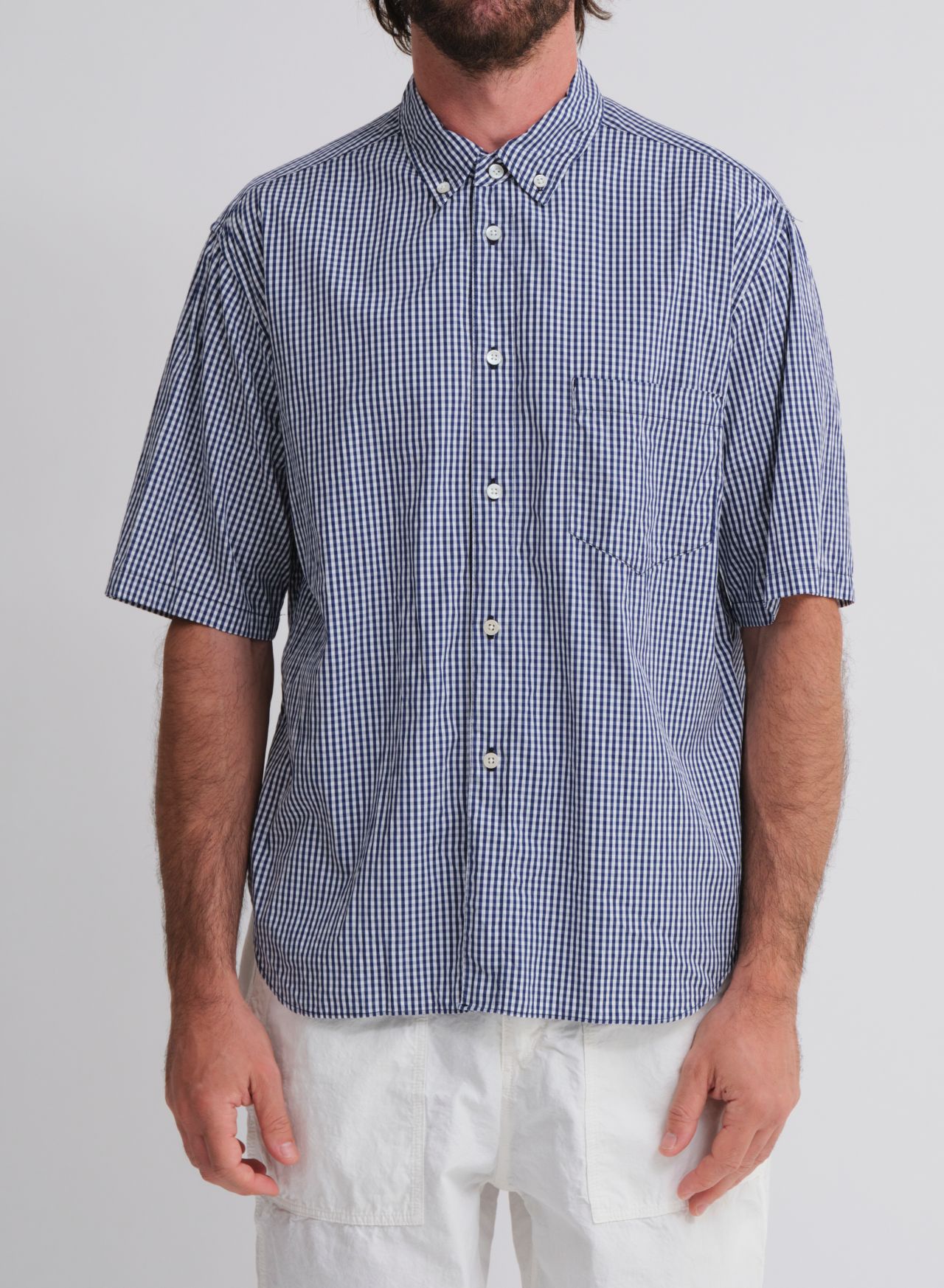 ・ギンガムチェック半袖釦ダウンカラーシャツ