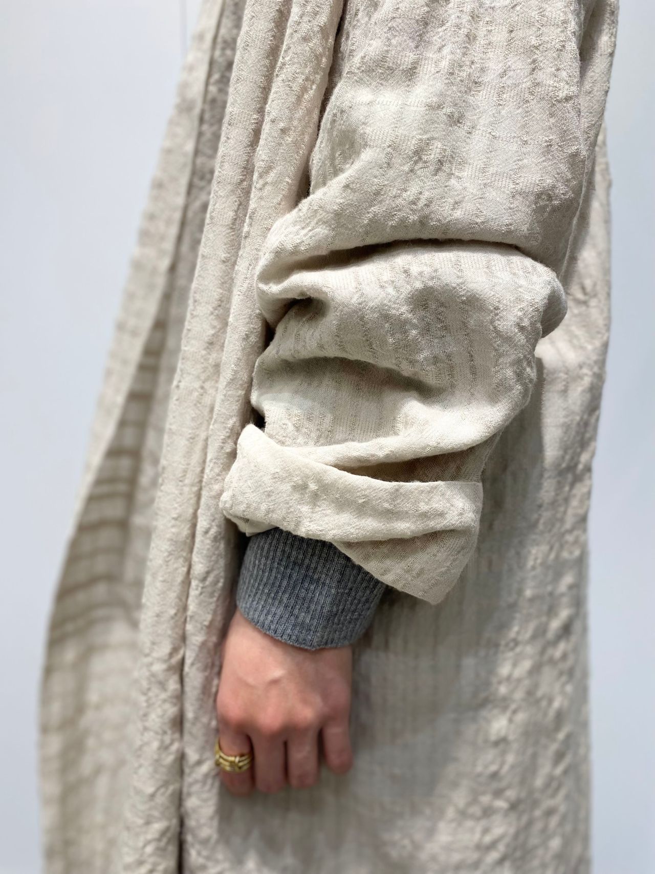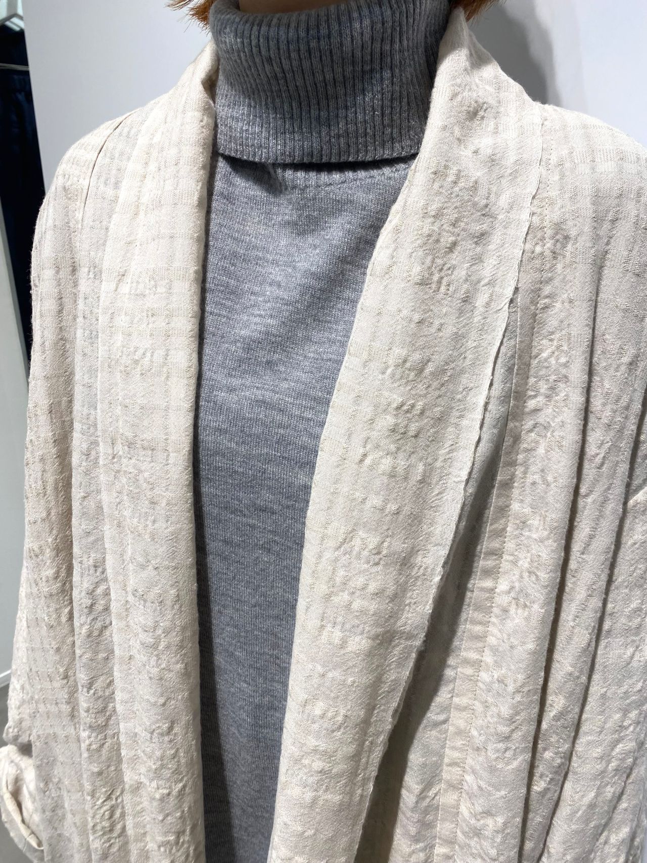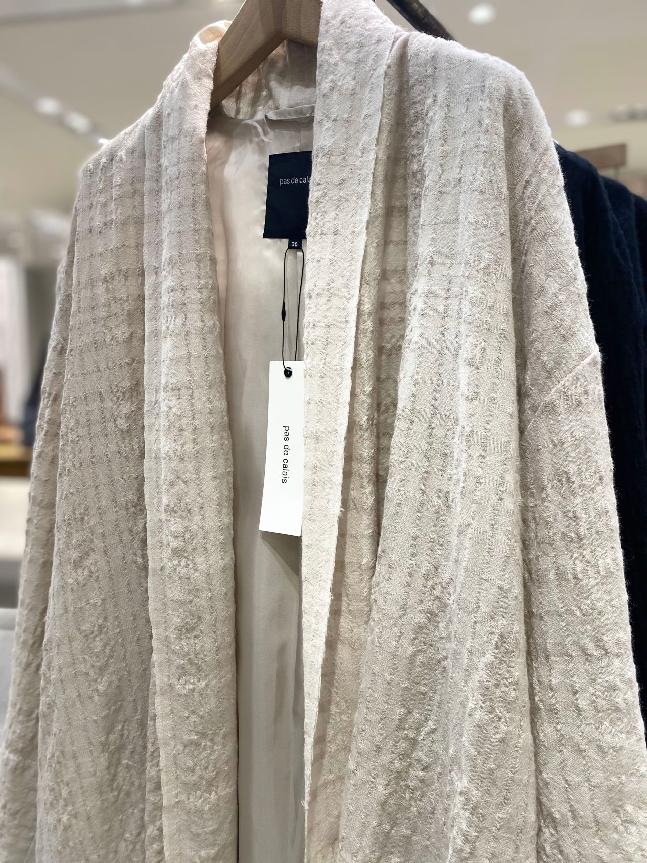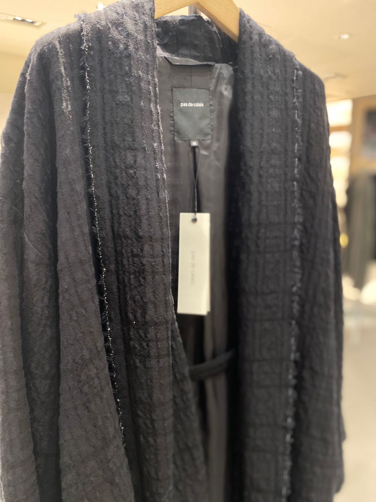 Style:パドカレ定番の分量感のあるコージーなコート。総裏地付き。内側見返し奥にはタブペルト付き。2個のホール穴で開節可能。様は生地の