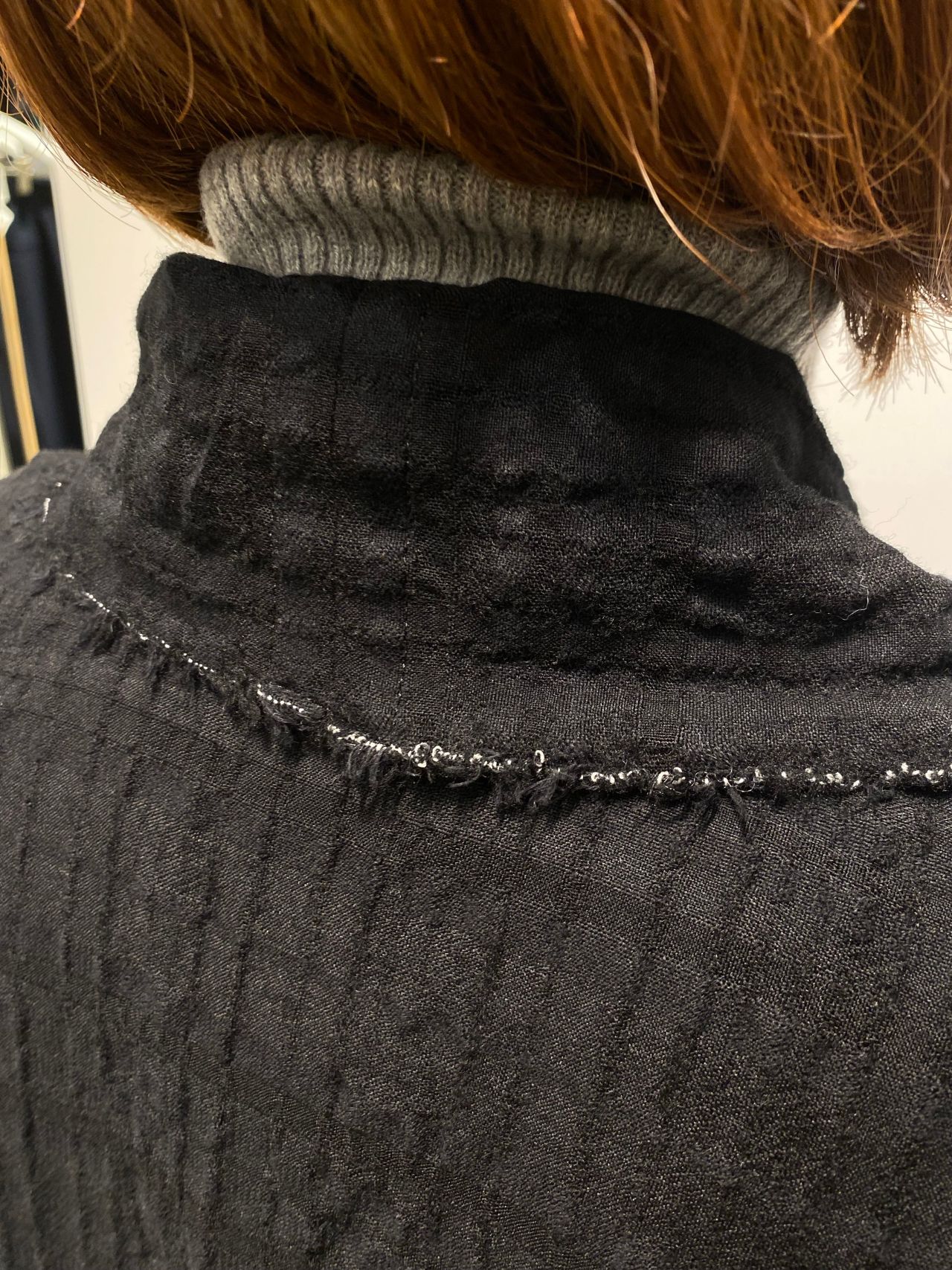 Fabric:綿ウールのアキハシャドーチェック。タテ糸整形時に、シャドーチェックになるように隙間を入れ、