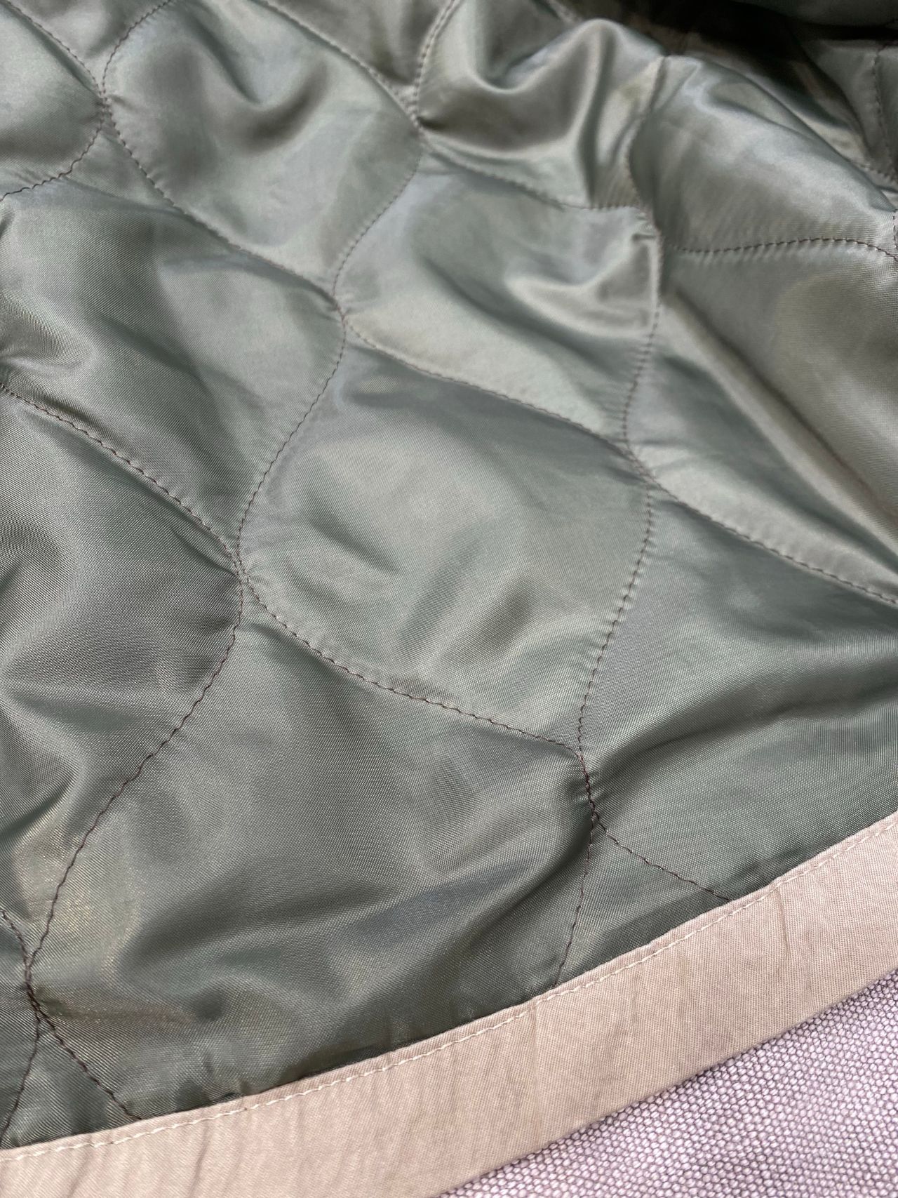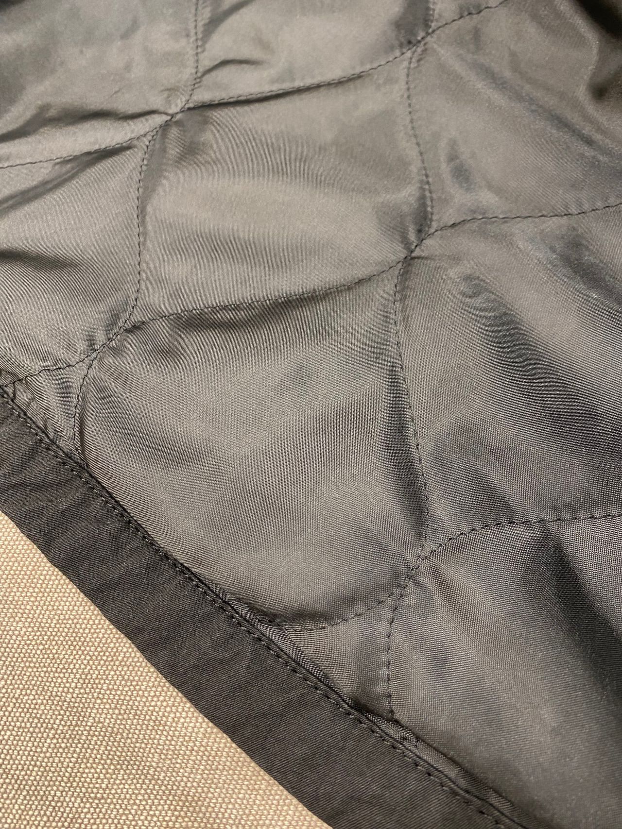 身頃裏には、ポリエステルタフタの中綿キルティング。袖裏は風を通さないポリエステルタフタを使い、防寒仕様の春まで使える仕様。