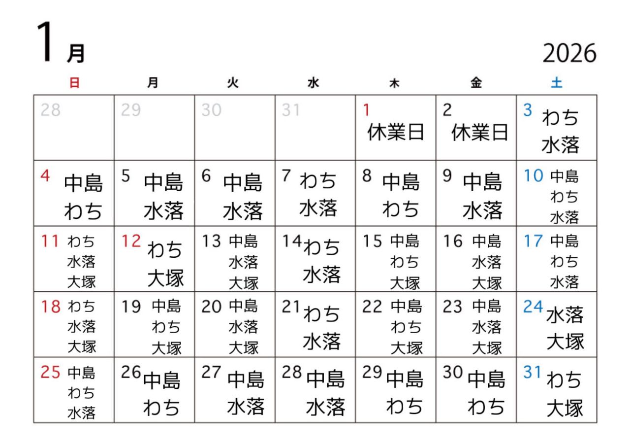 1/1(木)〜1/2(金) 休業日