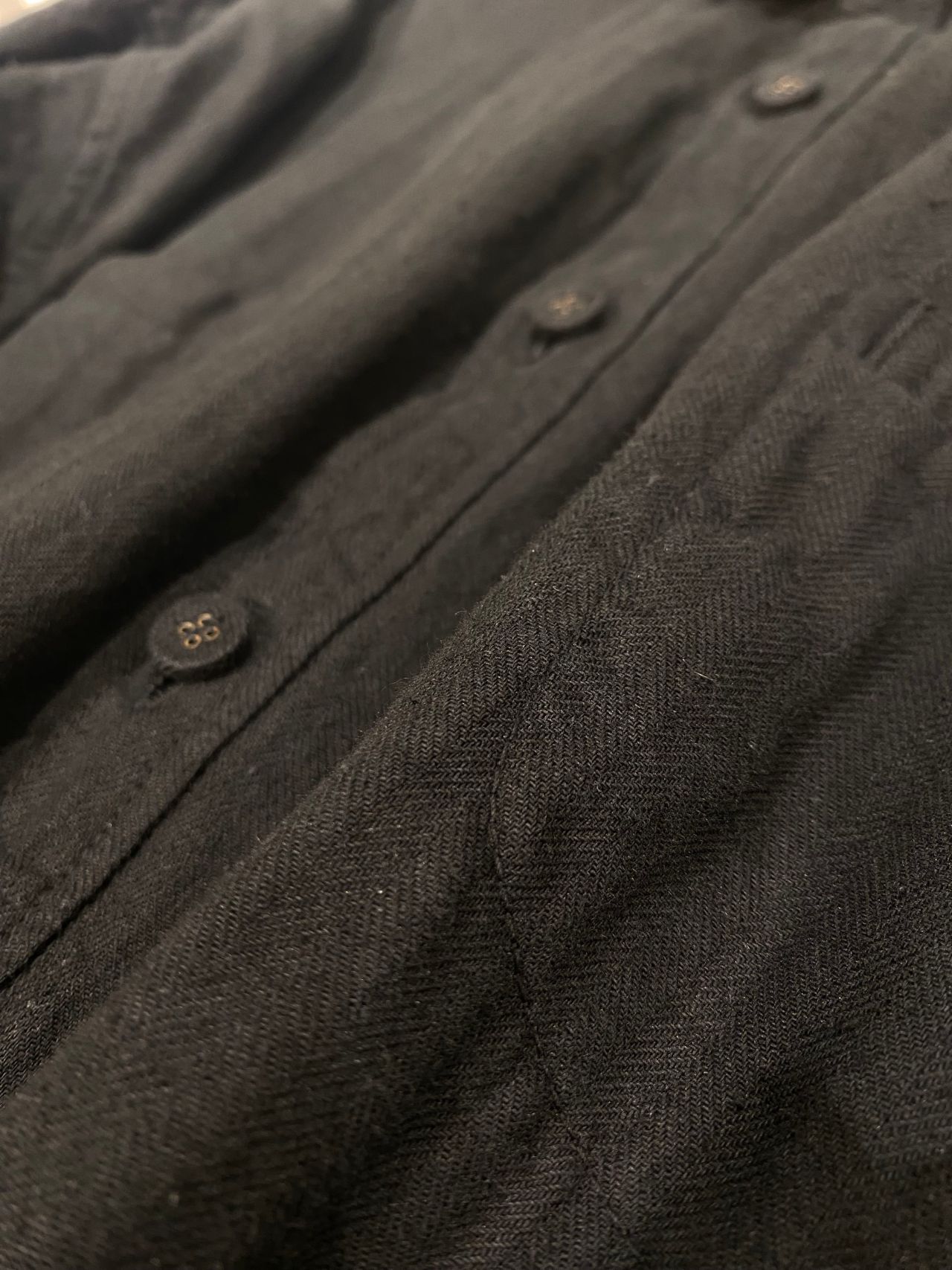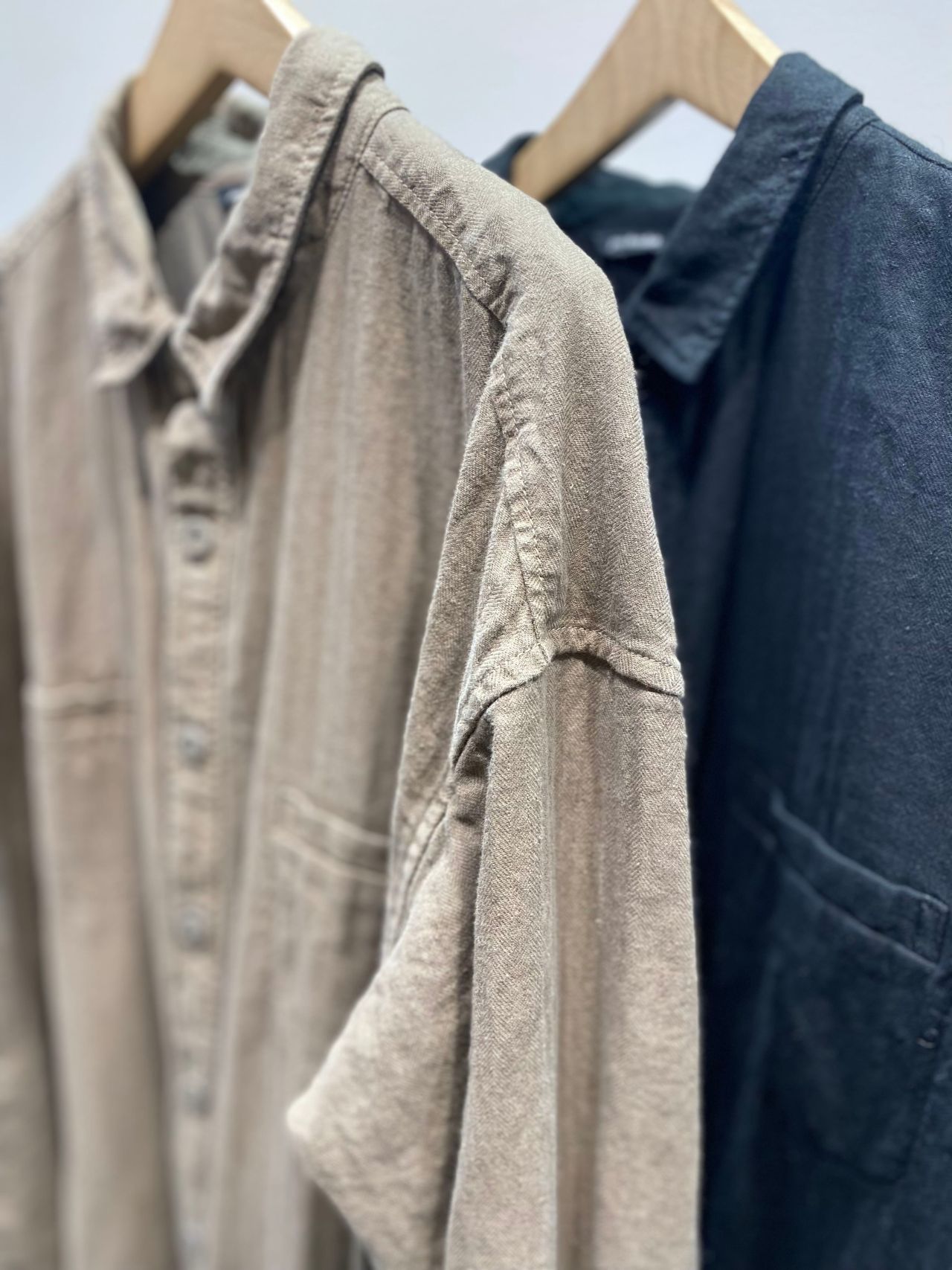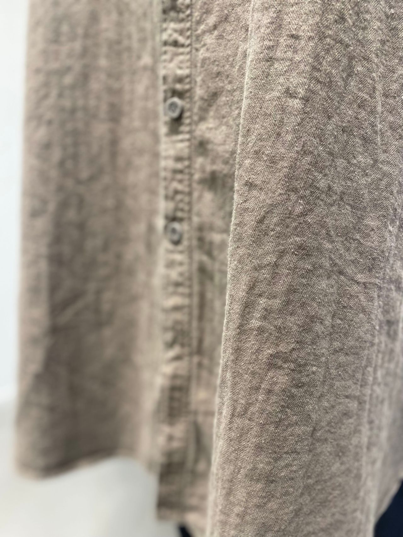 Fabric:綿麻の混紡糸で織ったヘリンボン素材。織りあがった後にワッシャー加工をすることで、ナチュラルな風合いを残している。製品染めを施し、柔らかさと膨らみを出している。