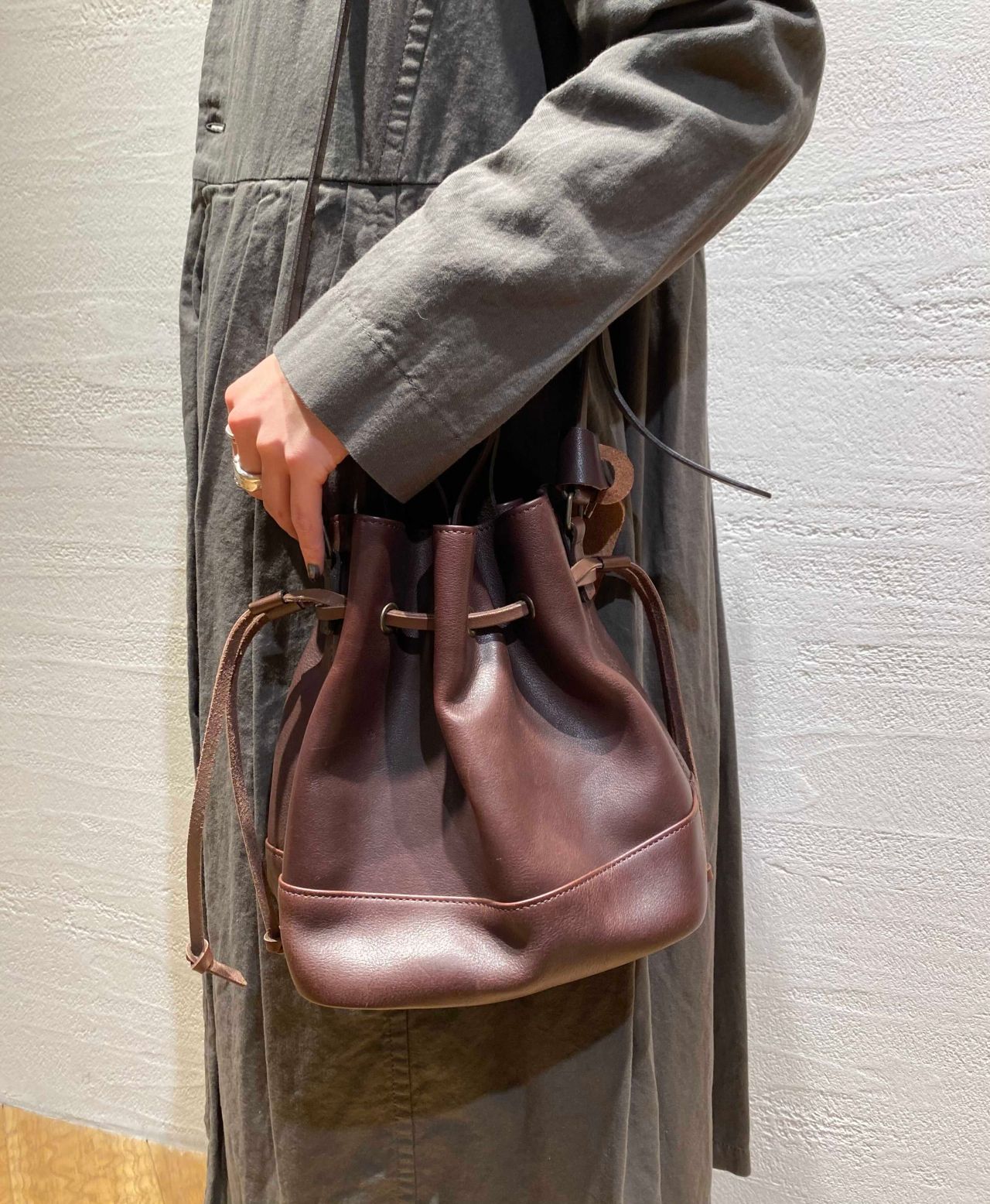 栃木レザー巾着 BROCANTE BAG(着用:ブラウン)